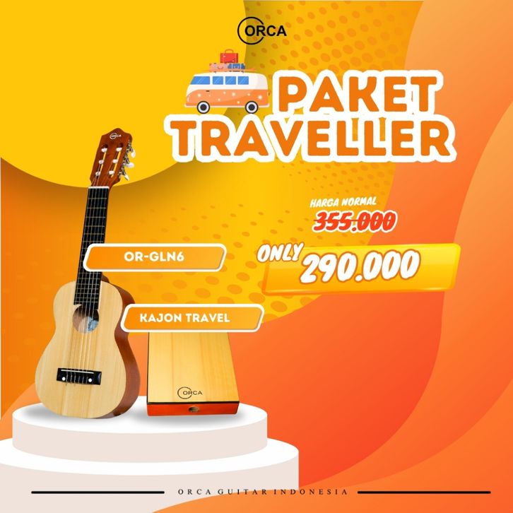 ORCA Paket Traveller ( Gitar Lele Senar 6 Nylon - Kajon Travel ) Limited Stock