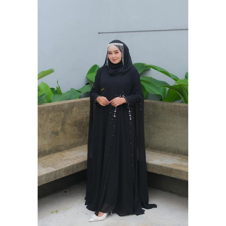 Arnufi - Abaya Gamis Ceruty Set Pashmina Haji dan Umroh Polos Wanita Elegan All Color Syafira