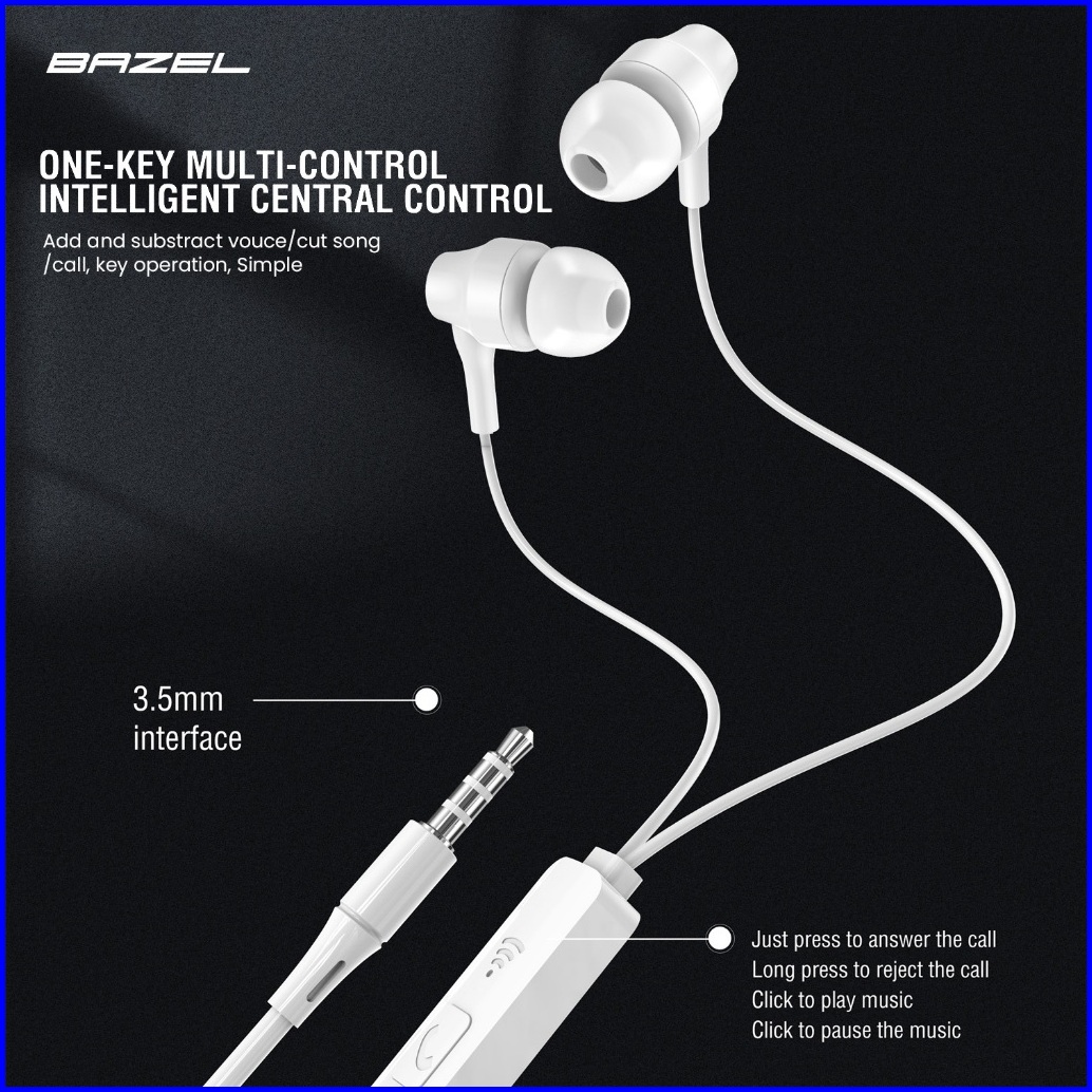 Headset Earphone Bazel Hs Series Jack 3.5mm Built-in Microphone