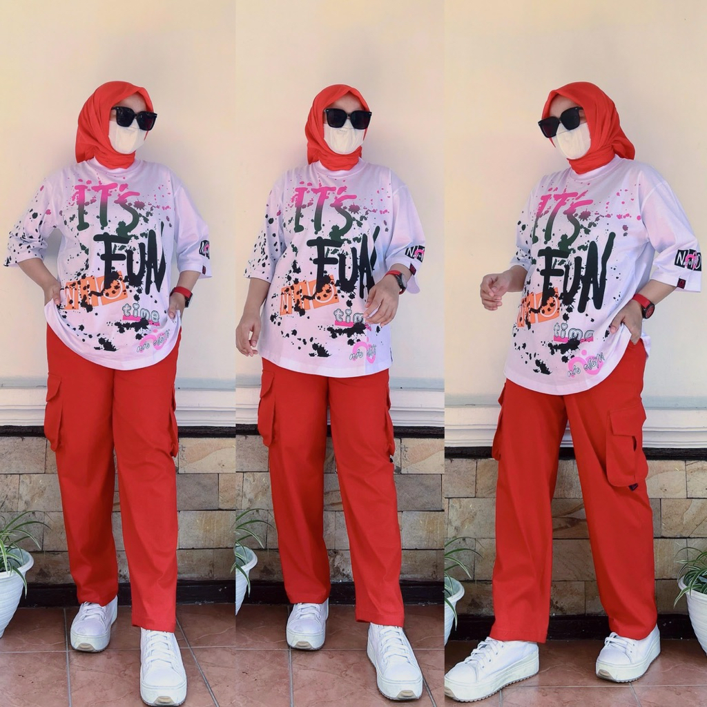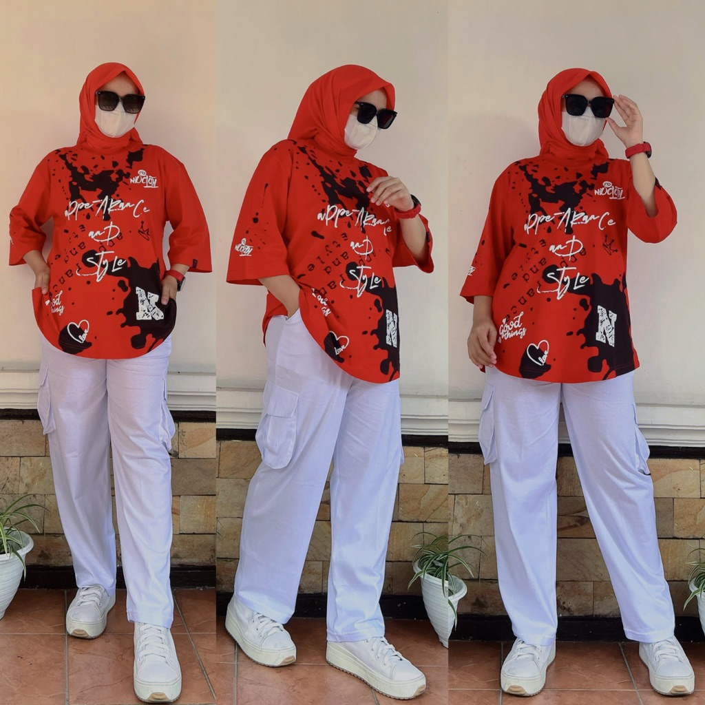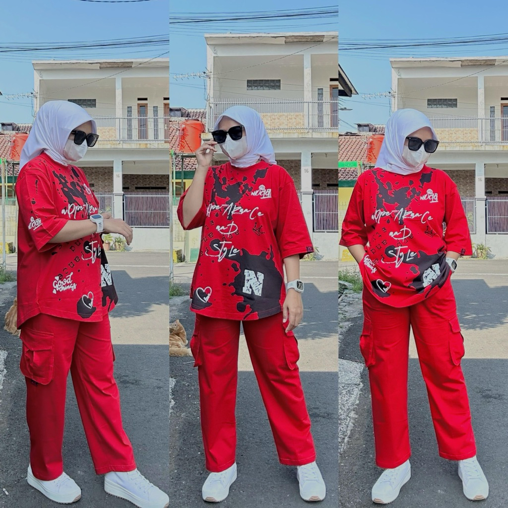 NIO - One Set Setelan Celana Oversize_Setelan Jumbo Terbaru Setcel Kaos Katun Combed Printing