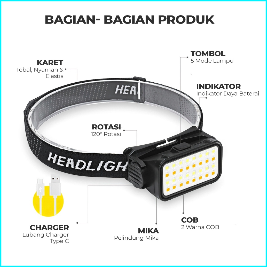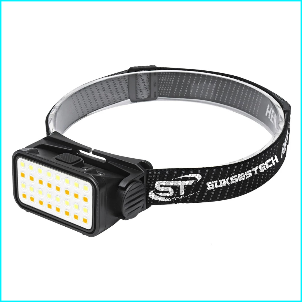 Suksestech Headlamp Senter Kepala Cas Cahaya Kuning Putih Waterproof 5 Mode Good Quality K351