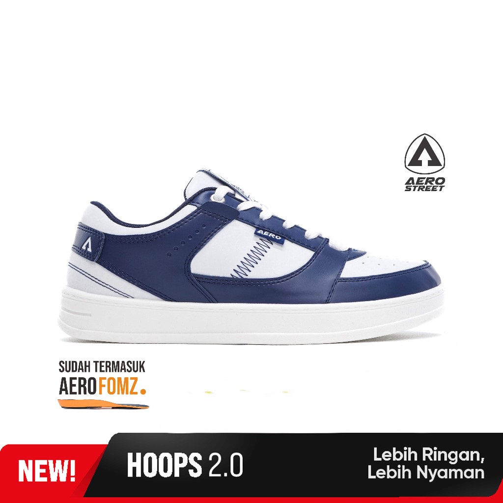 Sepatu Pria Sneakers Casual Hoops Low 2.0 Putih Putih Biru Tua