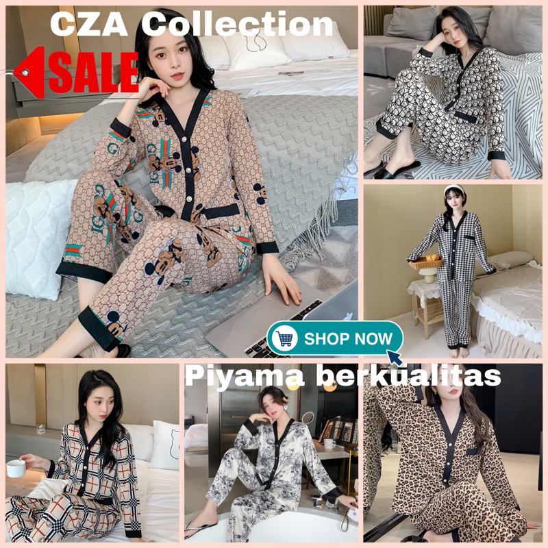 CZA Y457 Piyama Wanita Dewasa Model Kancing Depan Mewah Lengan Panjang Celana Panjang High Quality Sleepwear