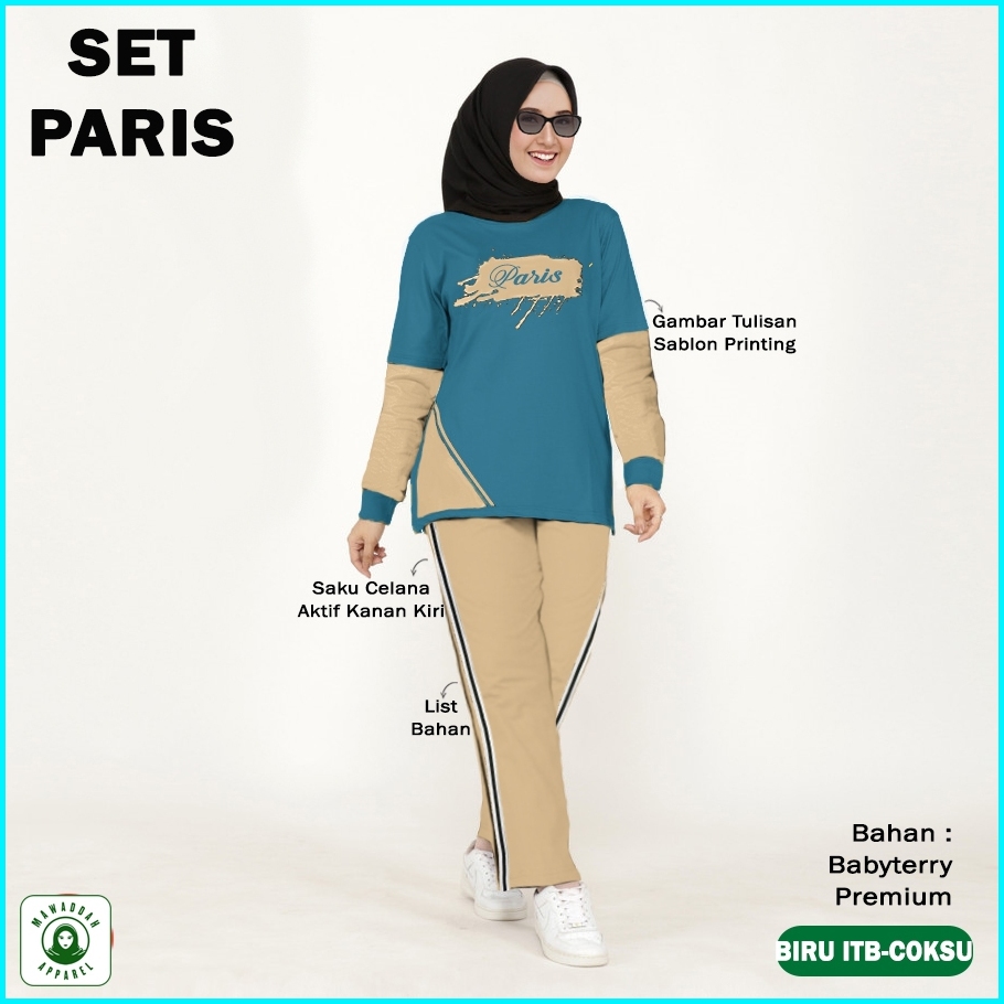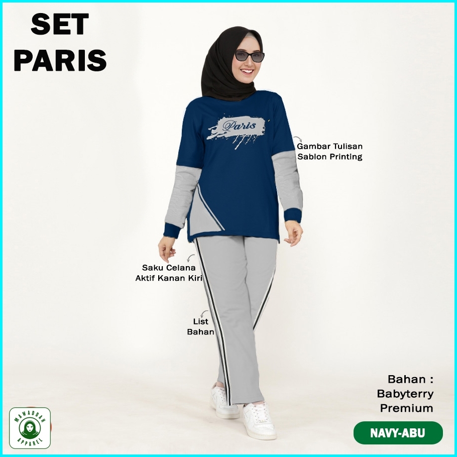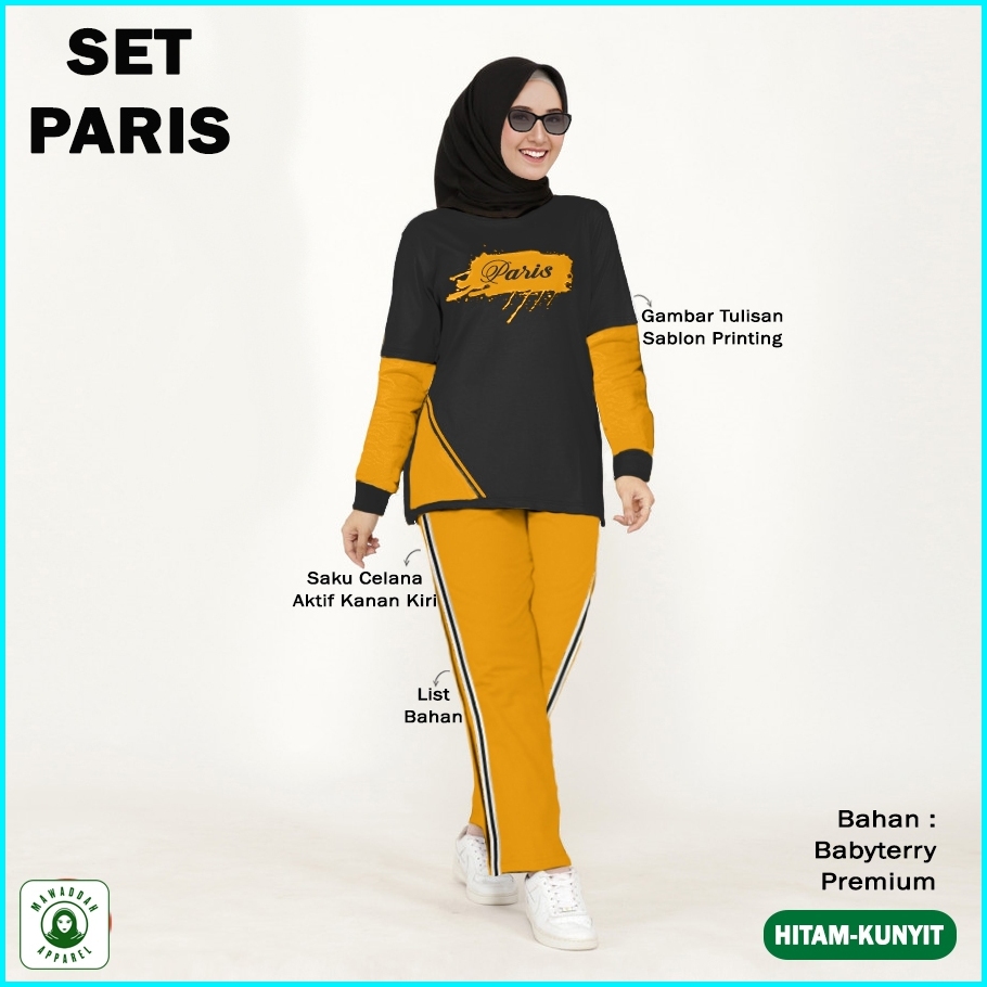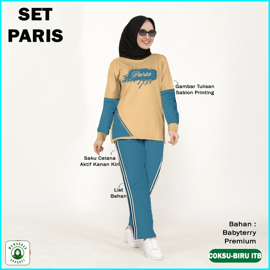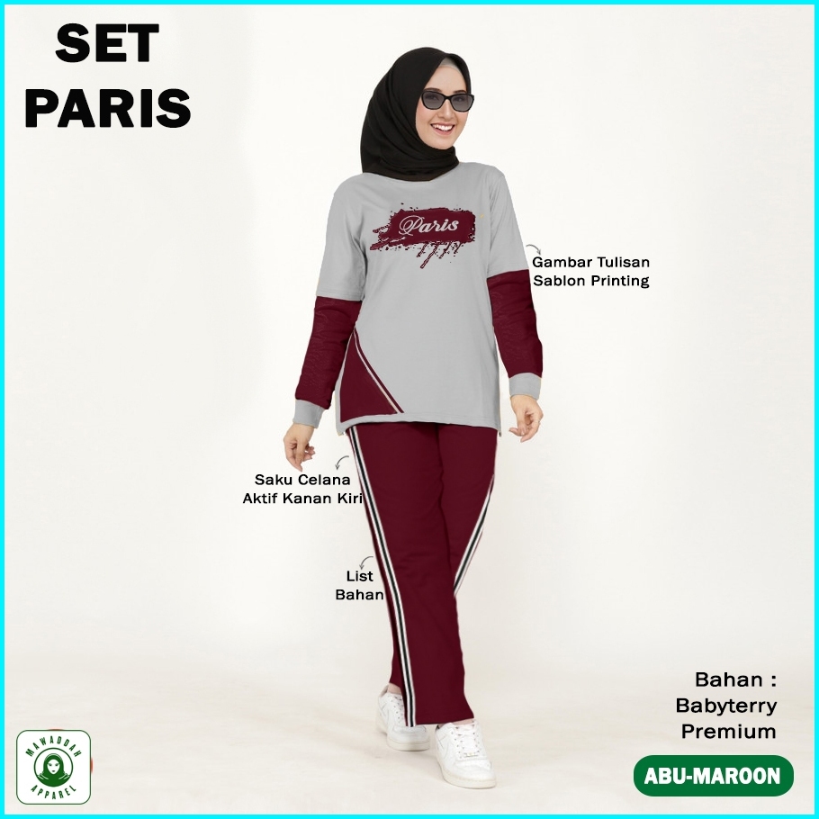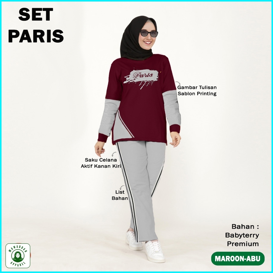 Ma Set Paris - Setelan Kaos Celana Olahraga Senam Wanita Muslim Sablon Bahan Babyterry Adem Size Xl Xxl Xxxl 35670