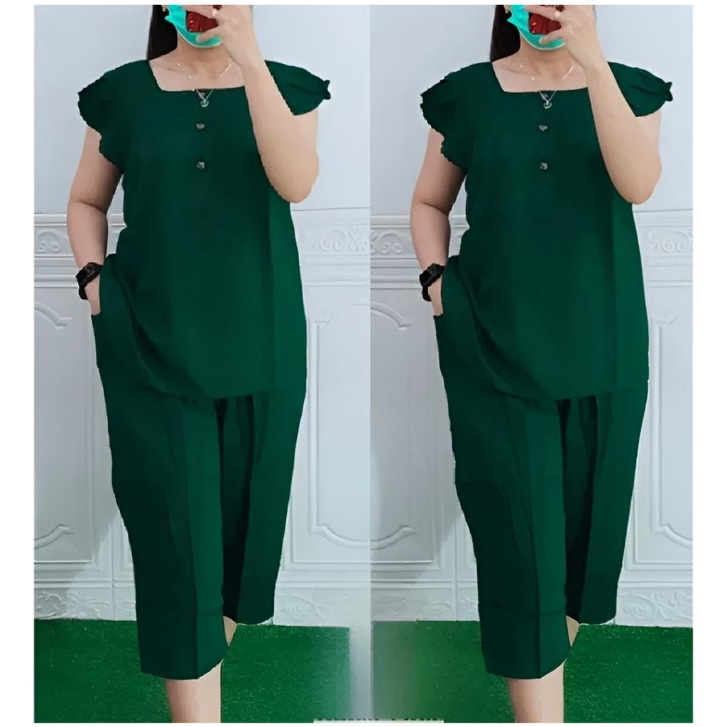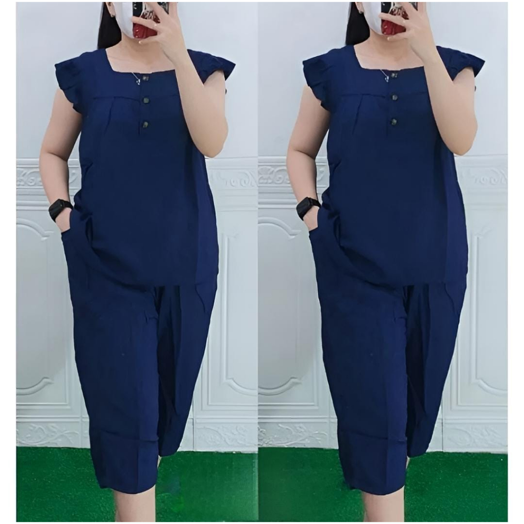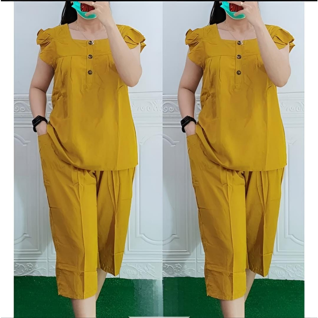 Setelan Bangkok 7/8 Bahan Rayon Crinkle Premium Oneset Crinkle Polos Setelan Wanita Oneset Kancing Baju Celana Atas