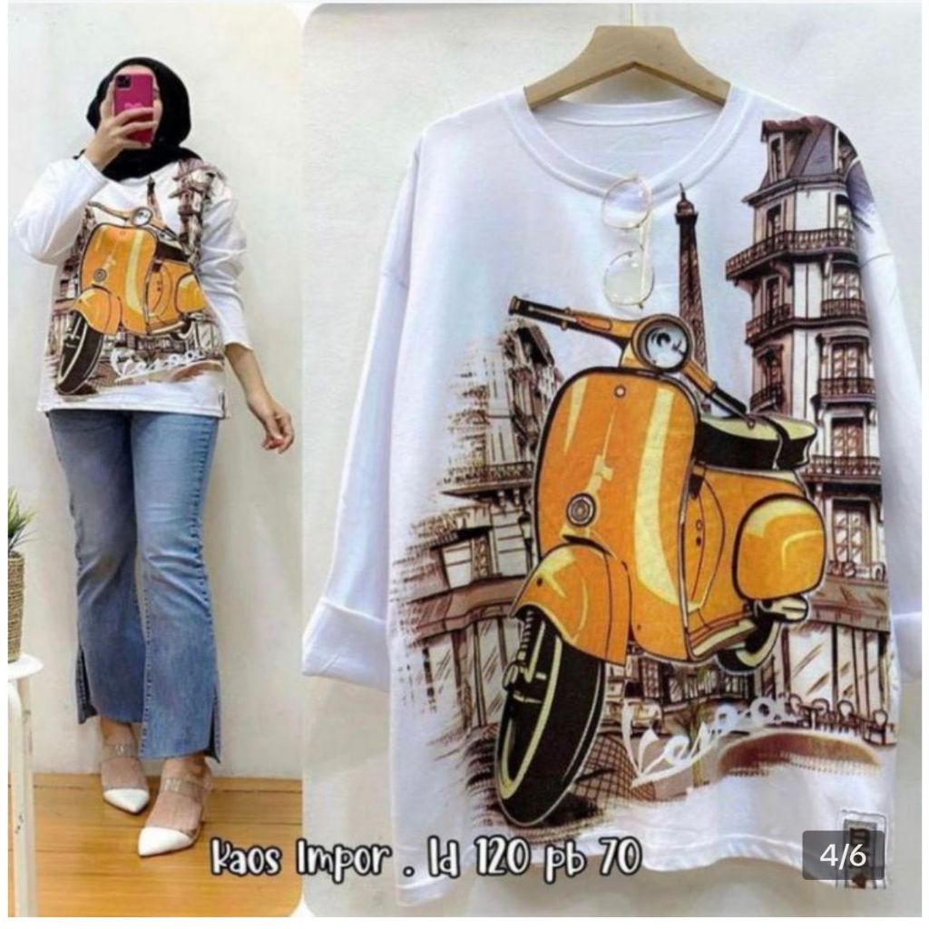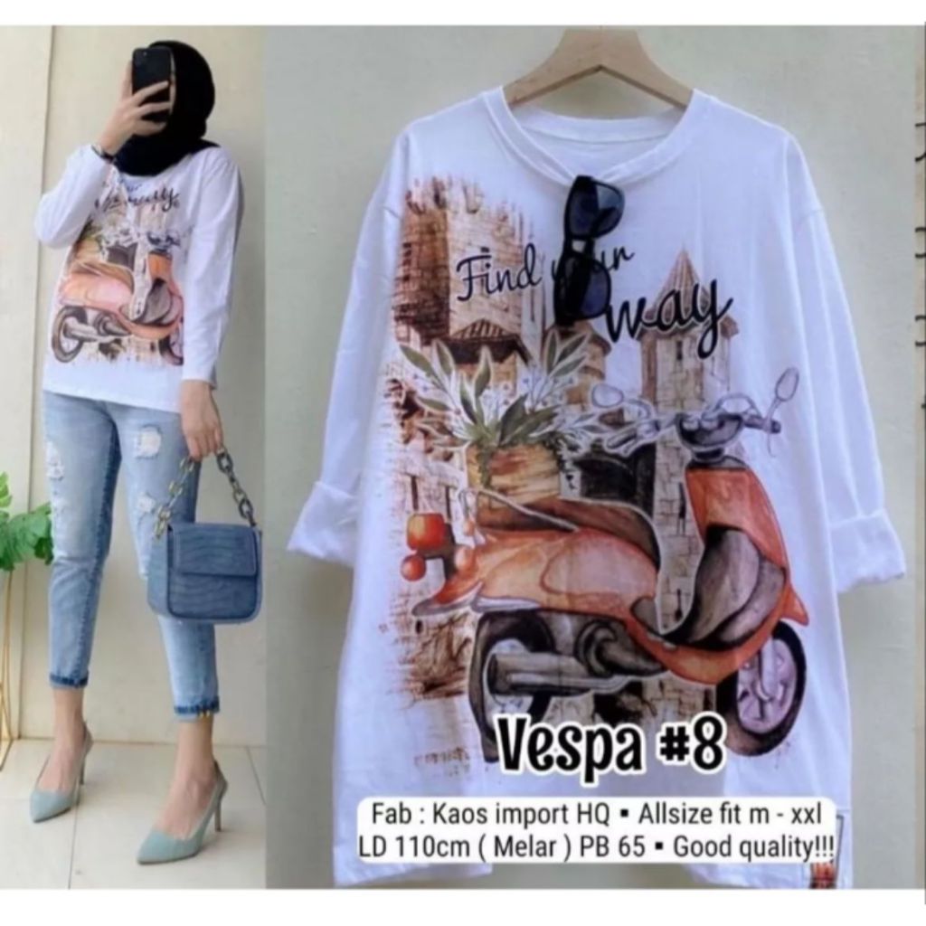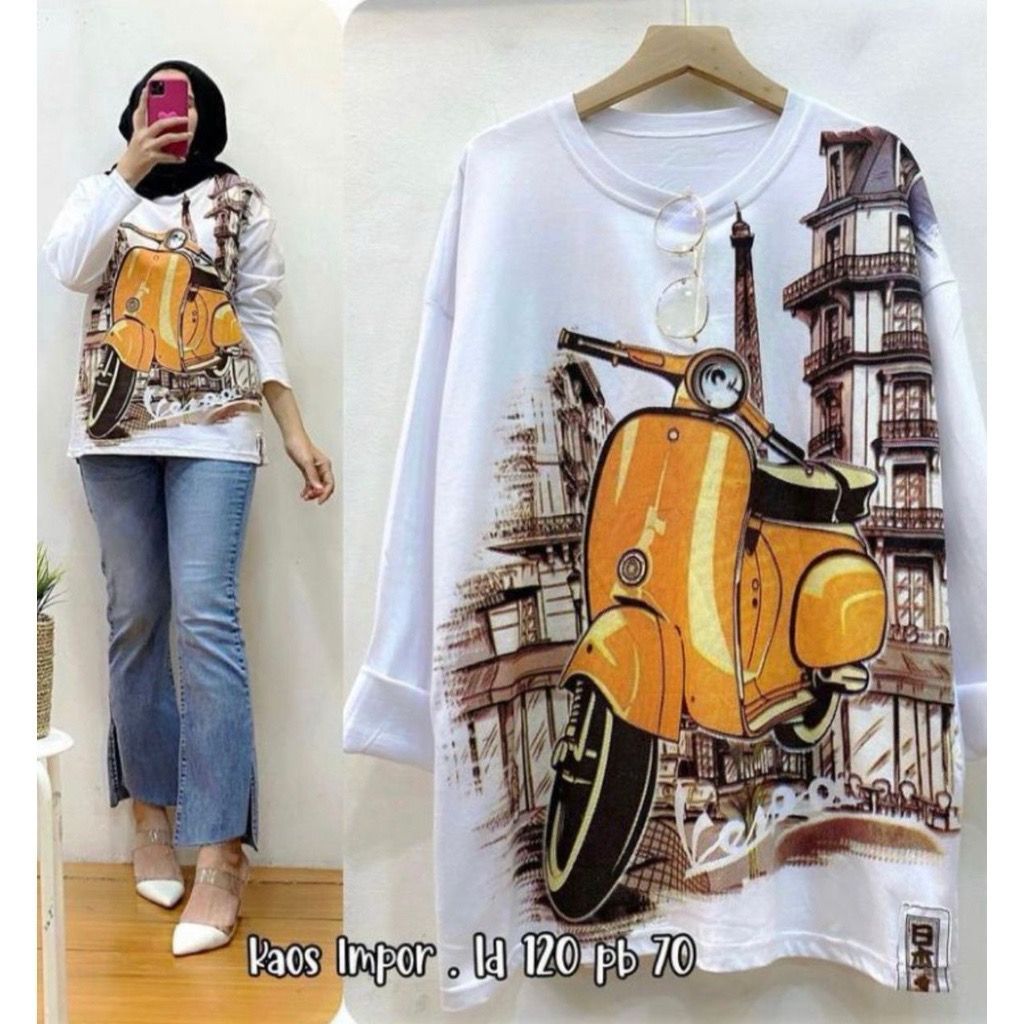 BAJU VESPA KAOS LENGAN TANGAN PANJANG WANITA BAJU SWEATER MOTIF VESPA MENARA BAJU ATASAN WANITA