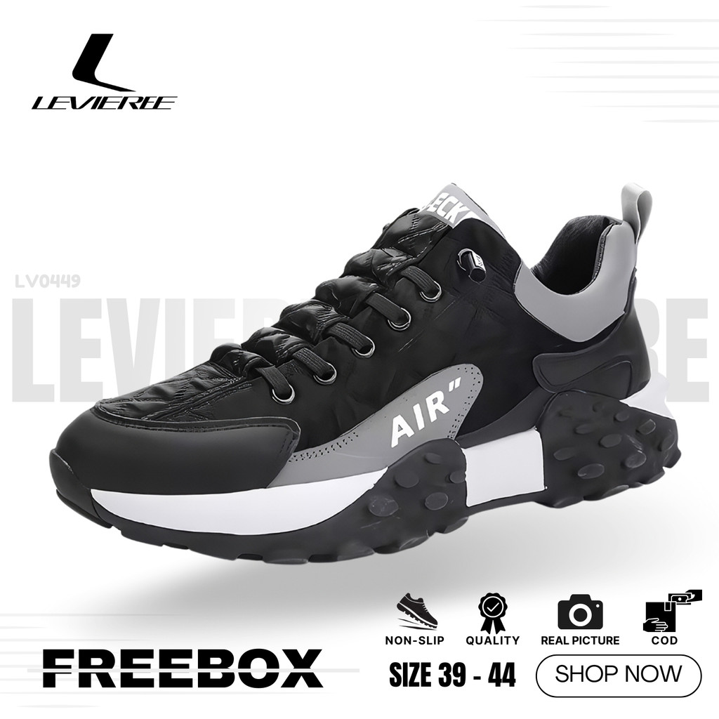 Sepatu Sneakers Pria Casual Sepatu Sport Hitam FREE BOX LV0449