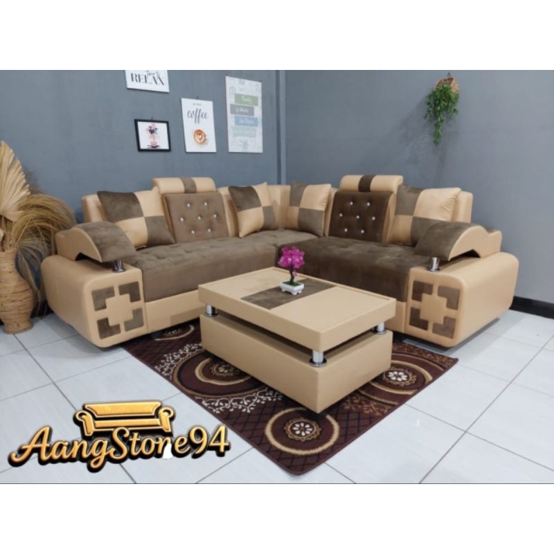 Sofa Kursi Sudut L Elegan Mewah Terbaik Lengkap Dengan Meja
