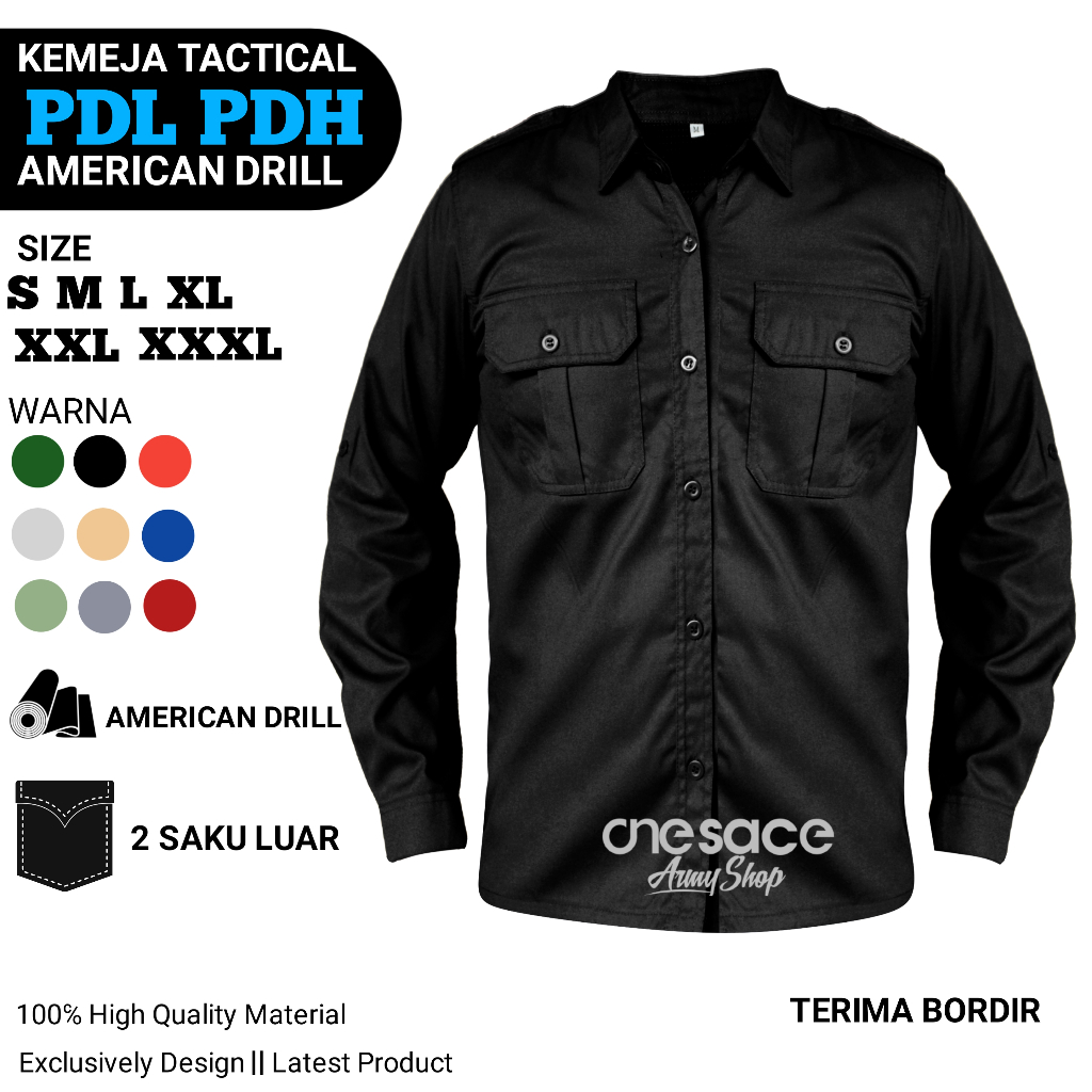 Baju Kemeja PDL PDH Lapangan Lengan Panjang - Pakaian Seragam Atasan Pria Wanita Polosan Outdoor Tactical