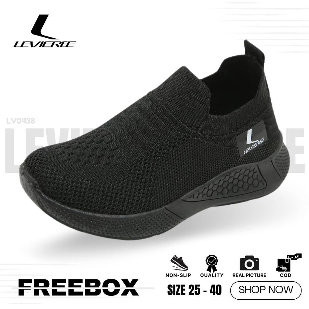 FREE BOX Sepatu Sneakers Hitam Tanpa Tali Anak & Wanita Slip On Anak Dan Wanita LV0438