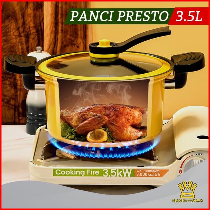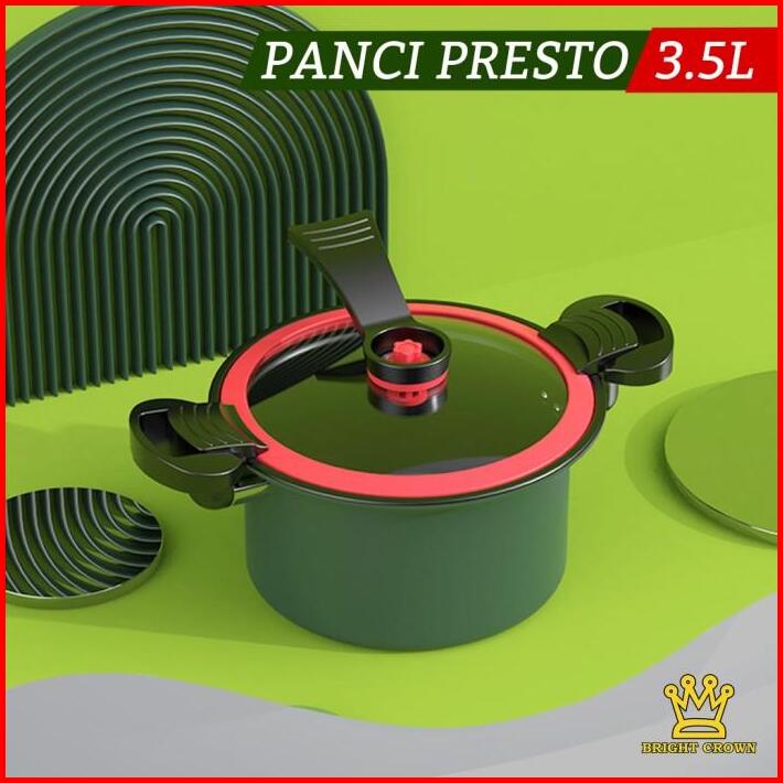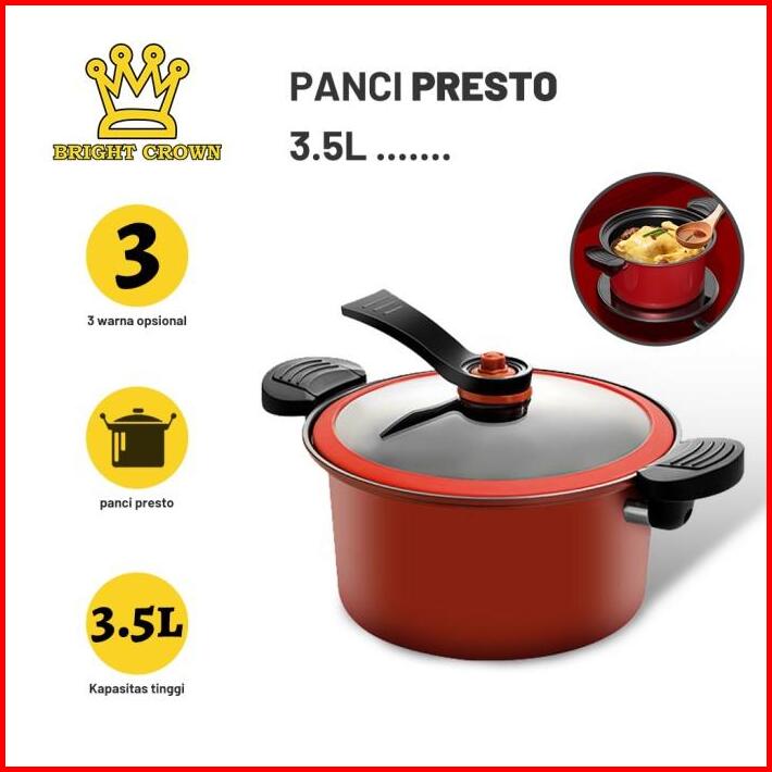 Brightcrown Panci Presto Teflon Totipotent Pressure Cooker Pot 3.5lite