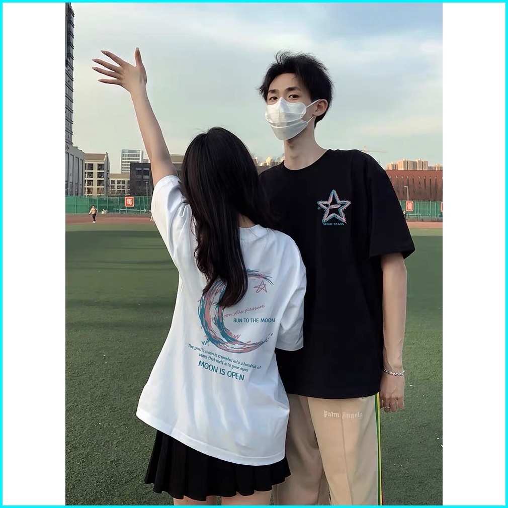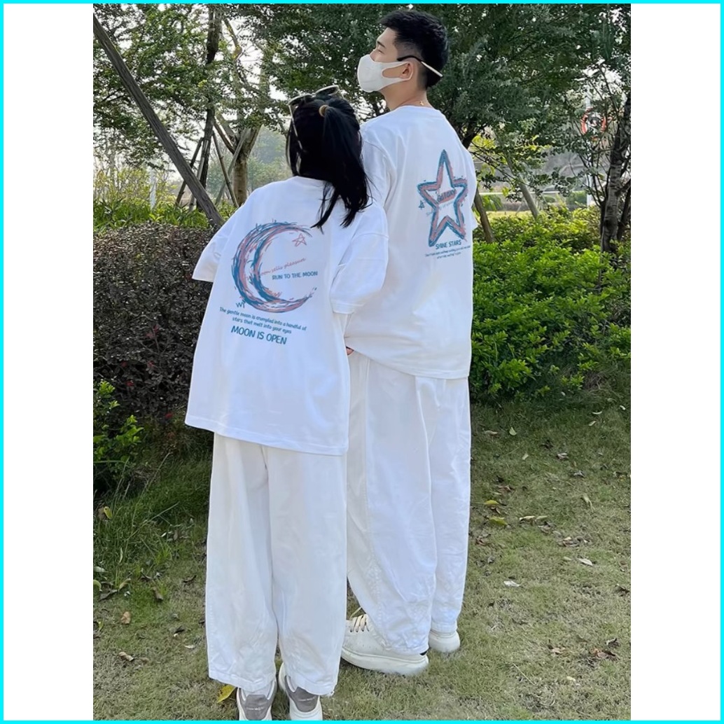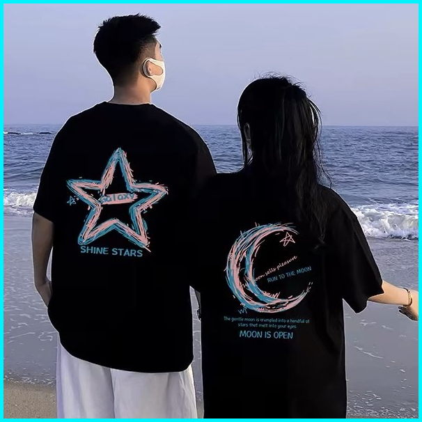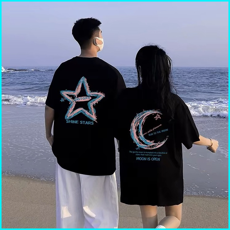 Baju Couple Korean Style Pasangan Ibaju Kaos Couple Pasanganipola Corat-coret Bintang Bulan