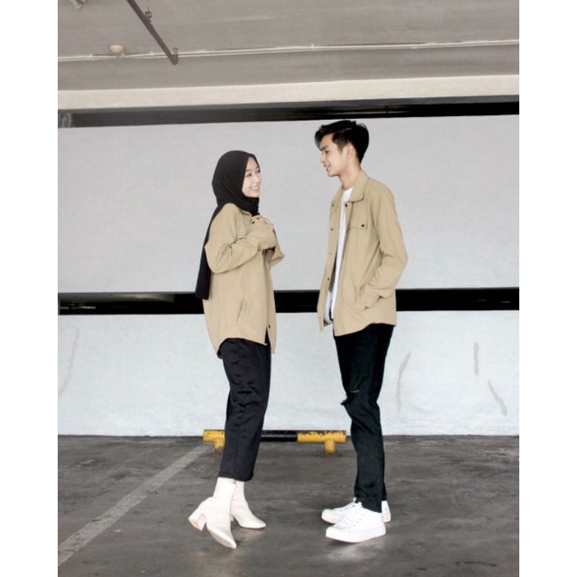Kemeja Outer Couple Set Korean Style - Kemeja Oversize Pria Wanita - Baju Couple