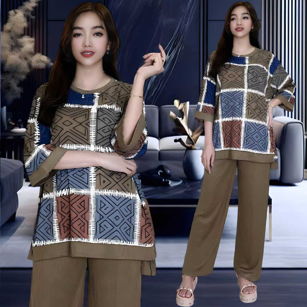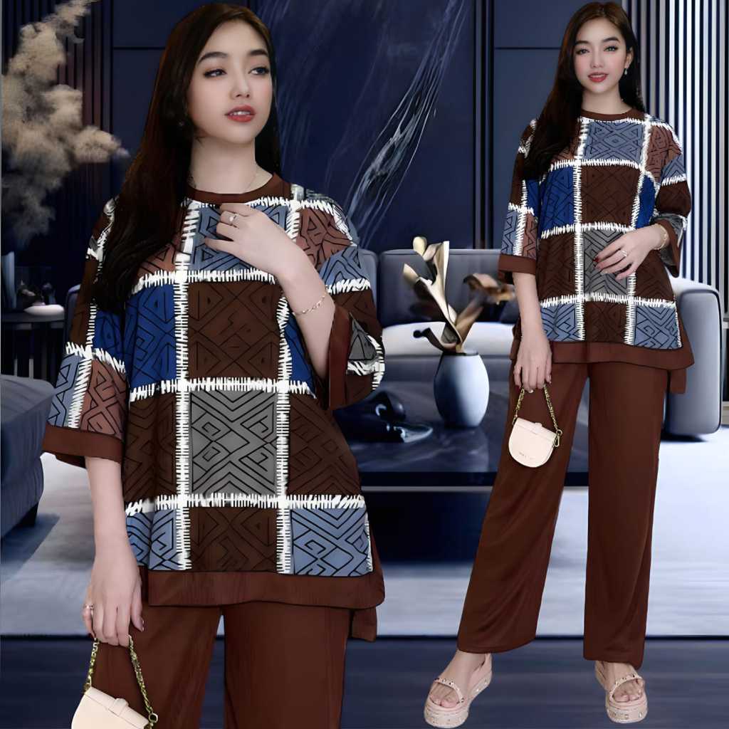 SADIRA LD 120 SETELAN WANITA CELANA DAN ATASAN OVERSIZE WANITA BAJU KANTONG KARET KAOS DEWASA Motif