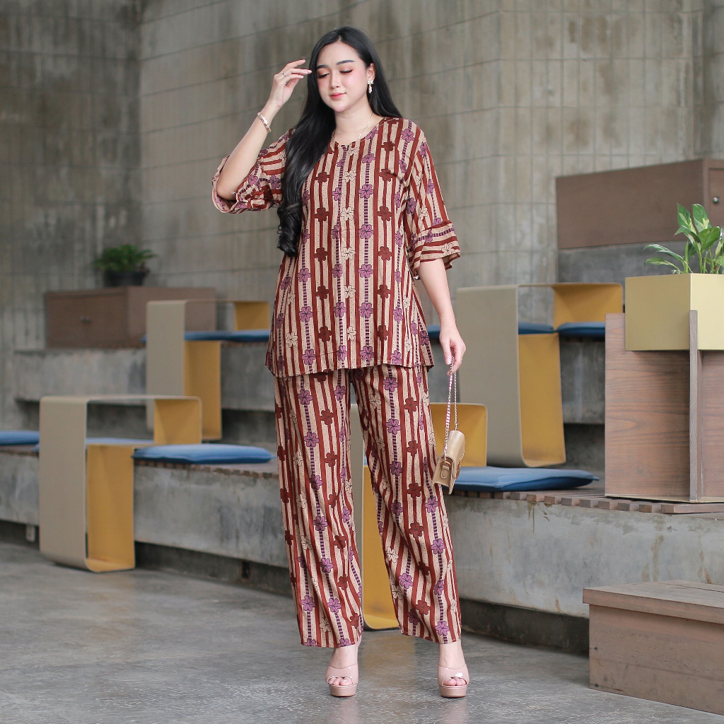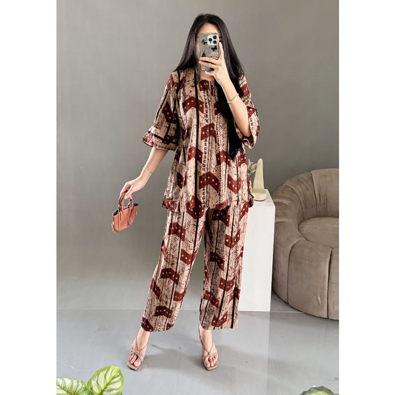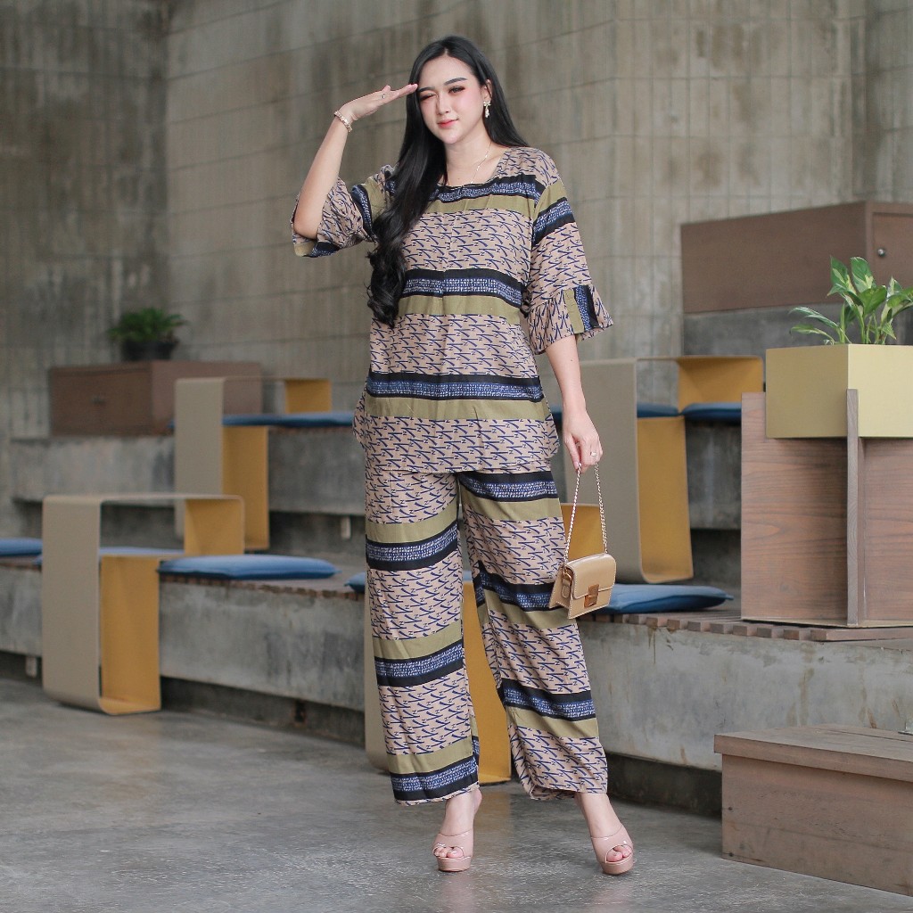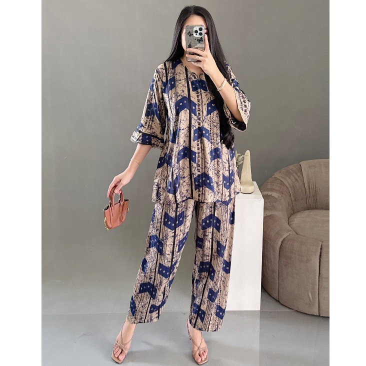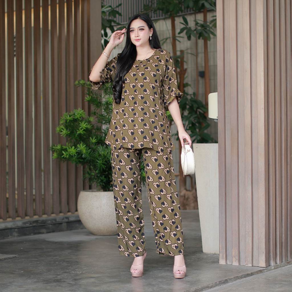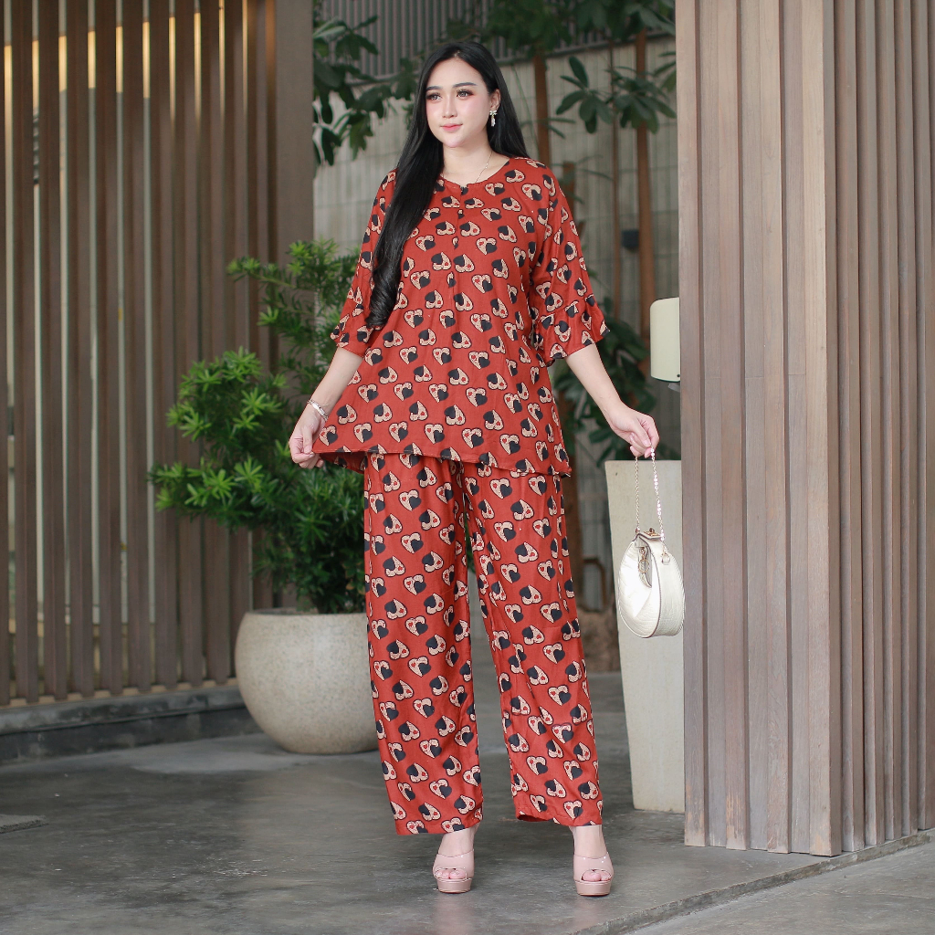 DAILY OOTD ONE SET MOTIF LAVENIA SETELAN LENGAN PENDEK RAYON PREMIUM KEKINIAN
