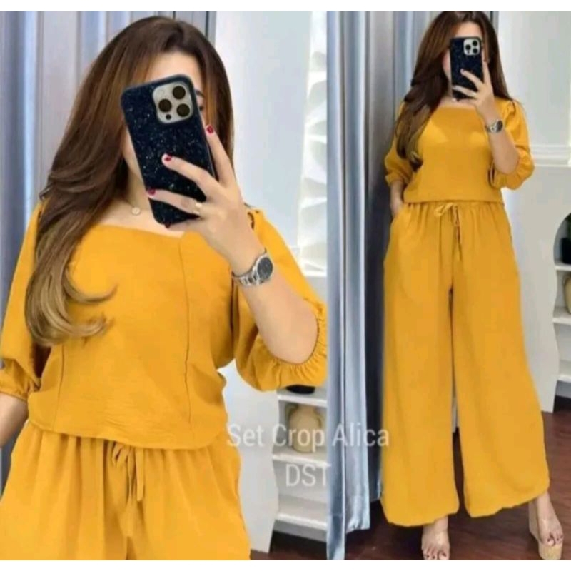 One Set Cringkel Wanita / Setelan Alica Set Crop Top Wanita Kekinian / Baju Setelan One Set Cringkel Airflow Premiu