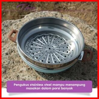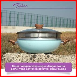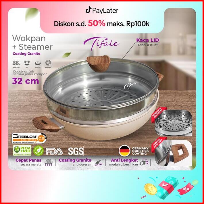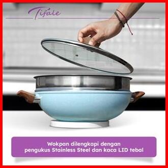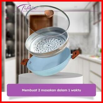 Nabung4 September Tifale 2in1 Wokpan Diameter 32cm Glass Lid Granite Steamer Non Stick Alat Masak Wok Dengan Panci Kukus