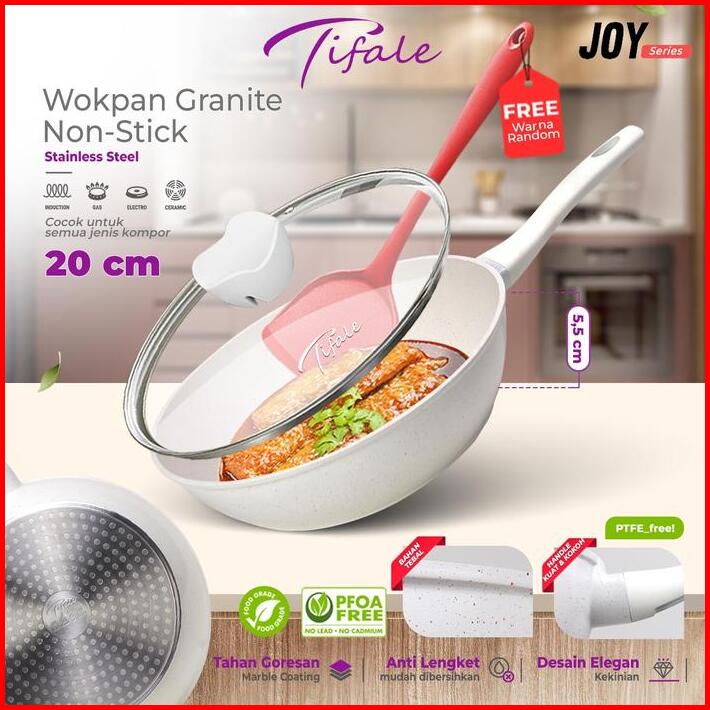 Celyhome Free Spatula Tifale White Granite Coated Series Fry Pan 20cm Anti Lengket Handle Bakelite Silicone Anti Leleh P