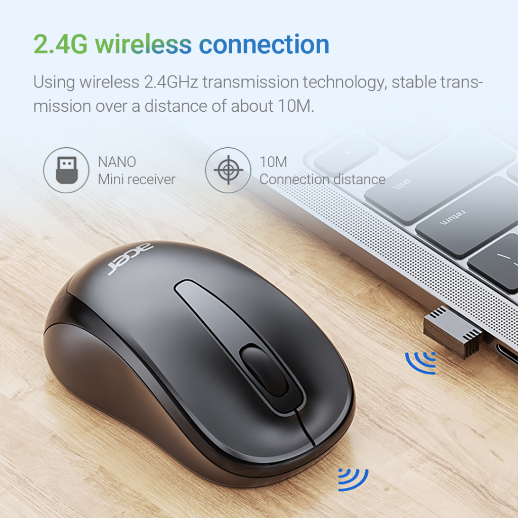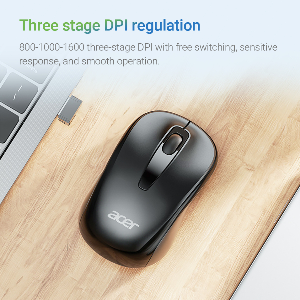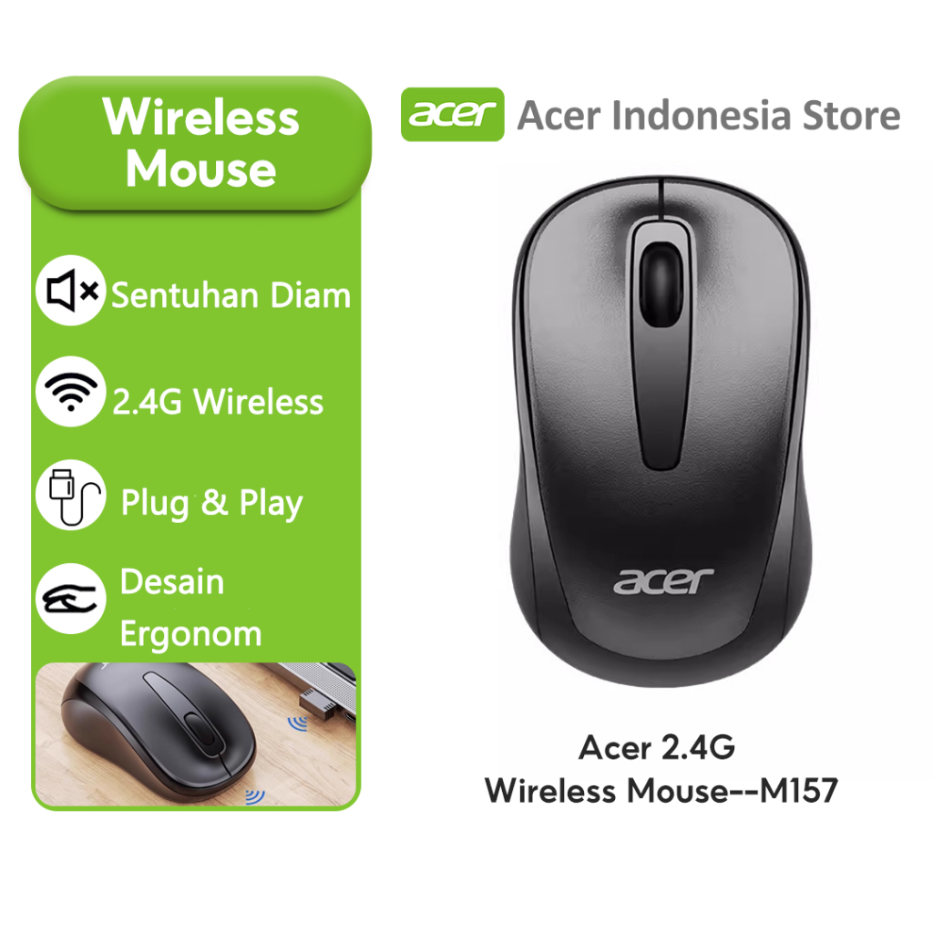 Acer Mouse Wireless M157 Low Noise 2.4GHz Optical 1600DPI Kursor Akurat Cocok untuk PC Laptop