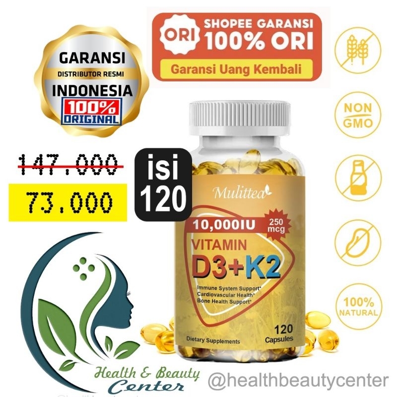 PROMO VITAMIN D3 + K2 KALSIUM TULANG LANSIA 120PCS VITAMIN D3 10.000 IU OSTEOPOROSIS MULITTEA VITAMIN D3 K2 CAPSULE 1000