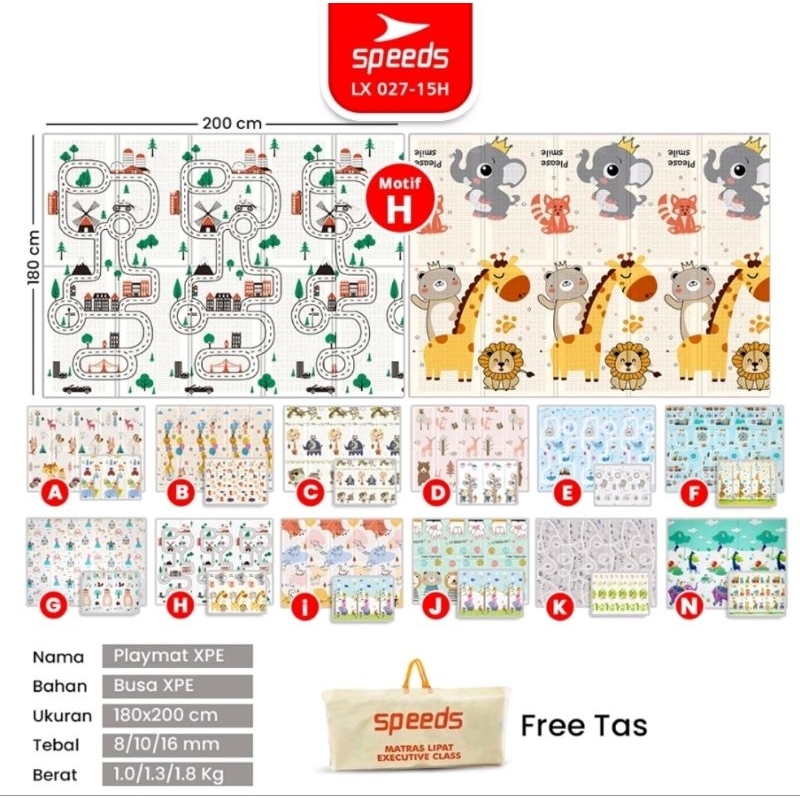 [Star] SPEEDS Karpet Lipat SNI 200x180cm Motif Bolak/i Playmat Bayi Playmate Anak Matras Tikar Lipat