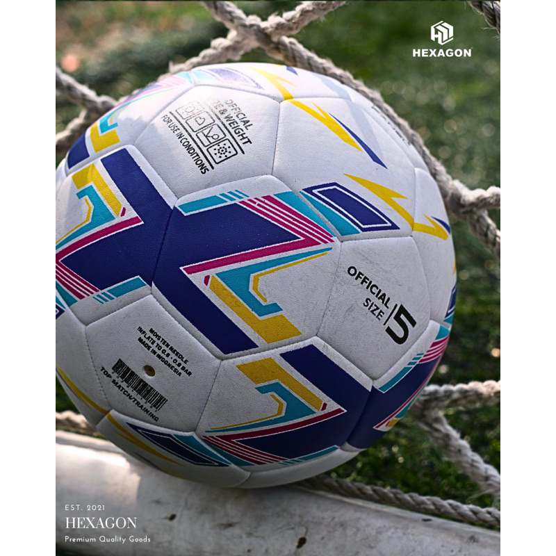 BOLA SEPAK SIZE 5 / BOLA KAKI ORIGINAL HEXAGON FORCE PAKET LENGKAPGRATIS PENTIL, JARING POMPA & TAS GYMSACK