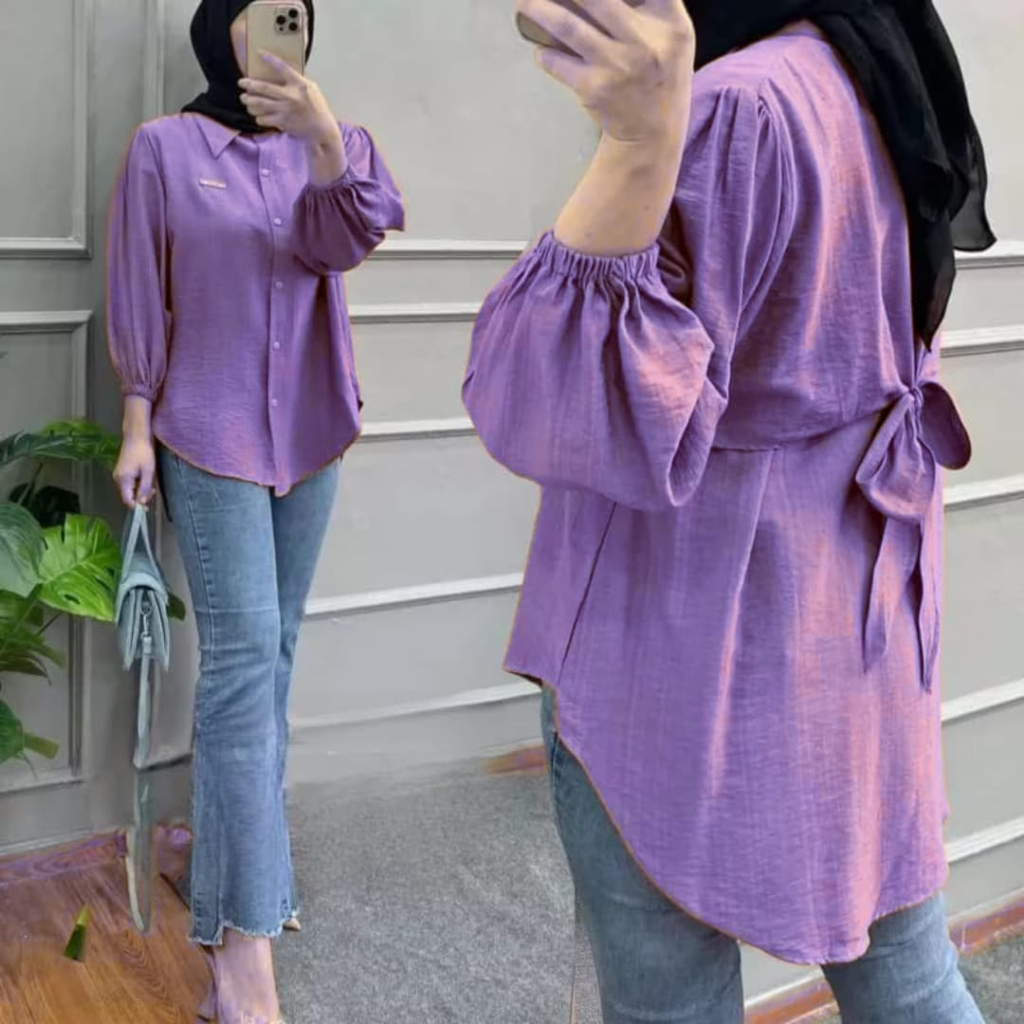 Atasan wanita lengan panjang(karet)cringkle airflow variasi pita belakang gaya dinamis overzise
