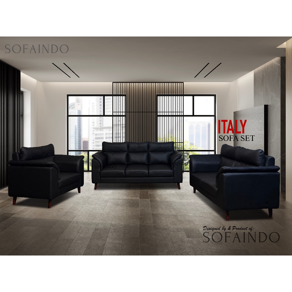 Sofaindo Italy Set Sofa 321 Kulit Premium - Hitam