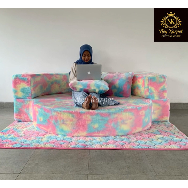 SOFABED 2 in 1 RAINBOW NEY KARPET KASUR SANTAI LEMBUT HALUS SOFA KEKINIAN