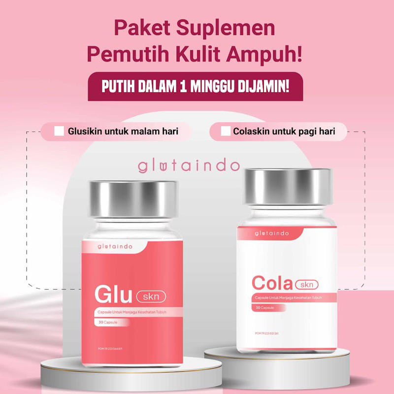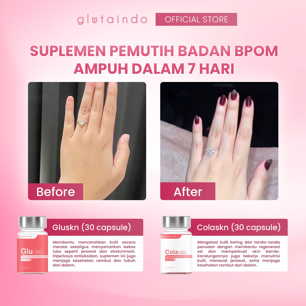 Glutaindo Duo Whitening Suplemen / Kapsul Pemutih Badan Seluruh Tubuh Gluskn + Colaskn