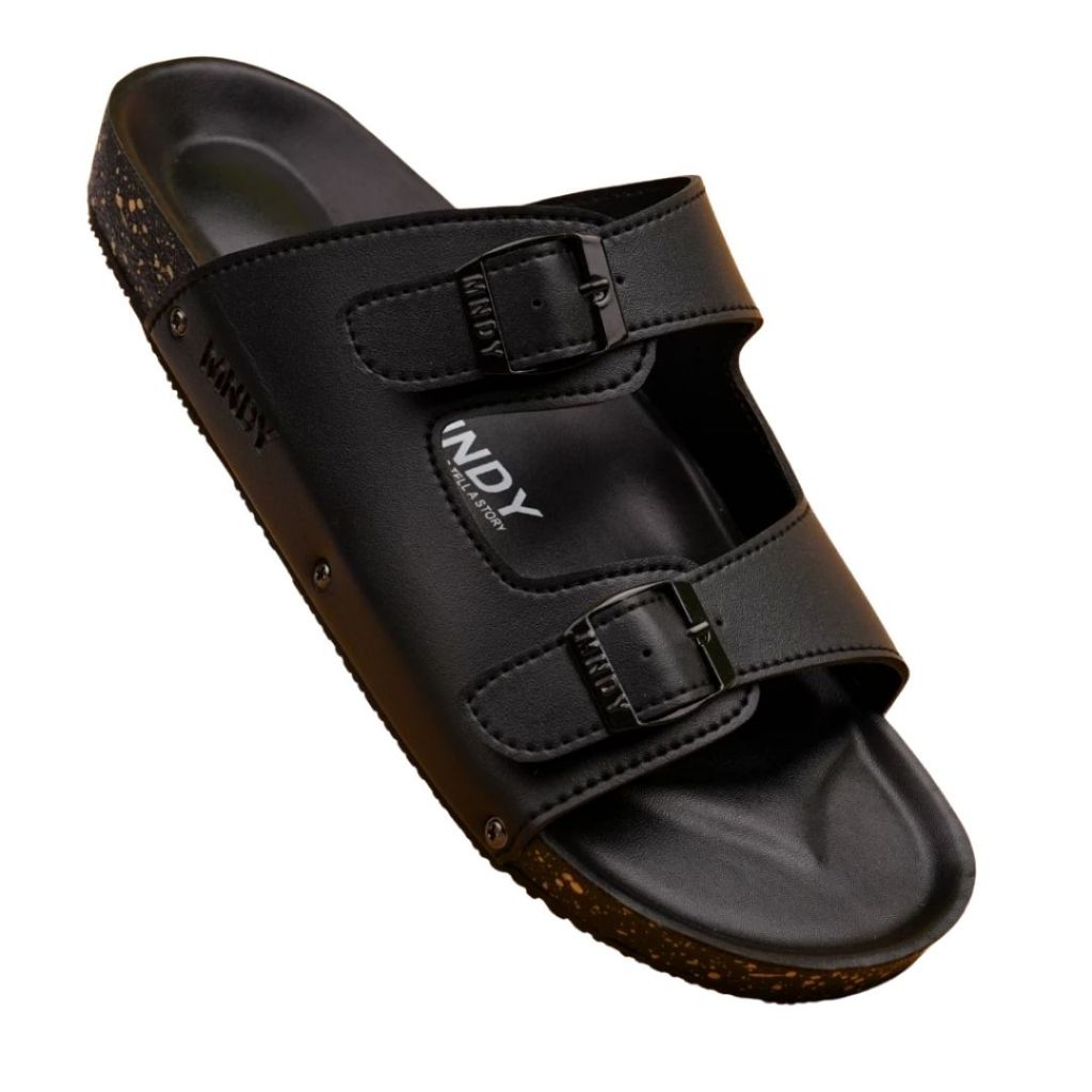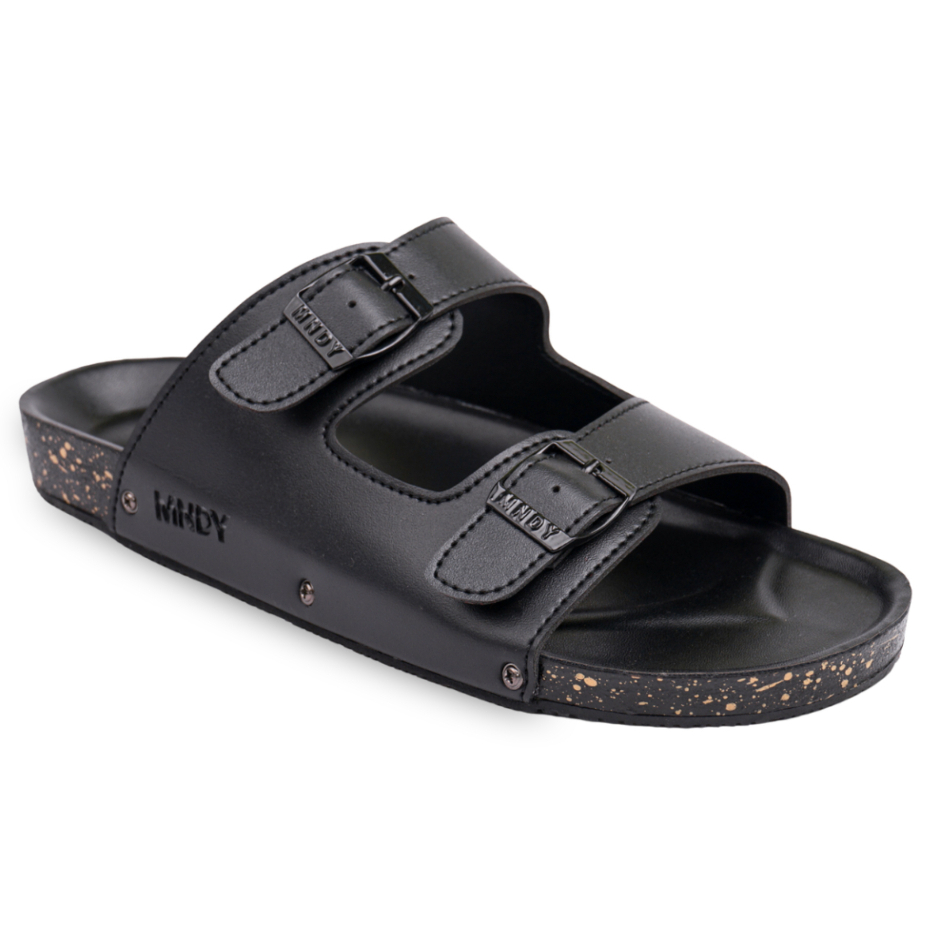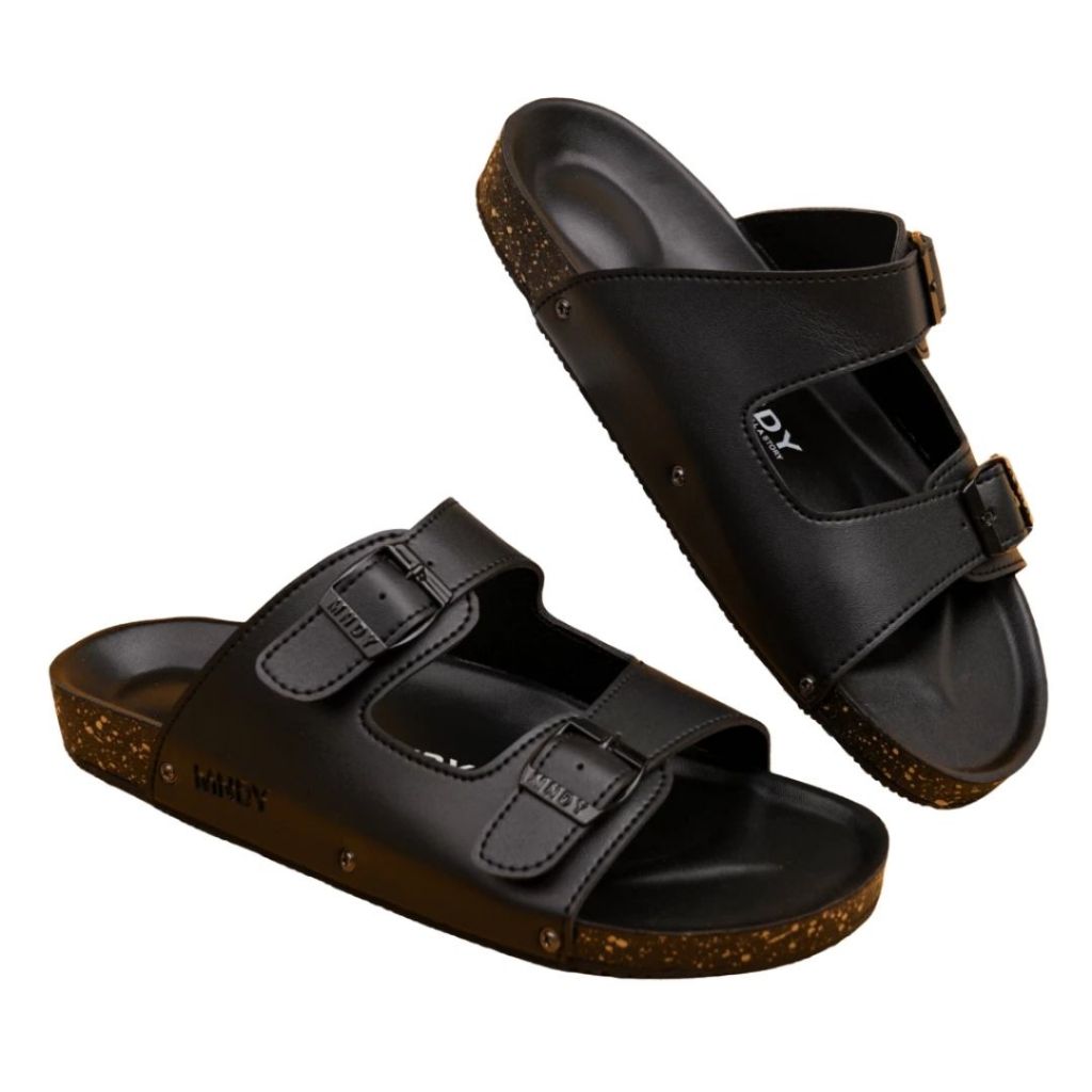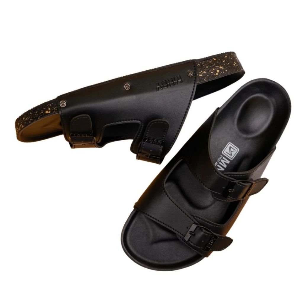 MONDAY - Yuno Full Black Sandal Slop Kulit Casual Pria
