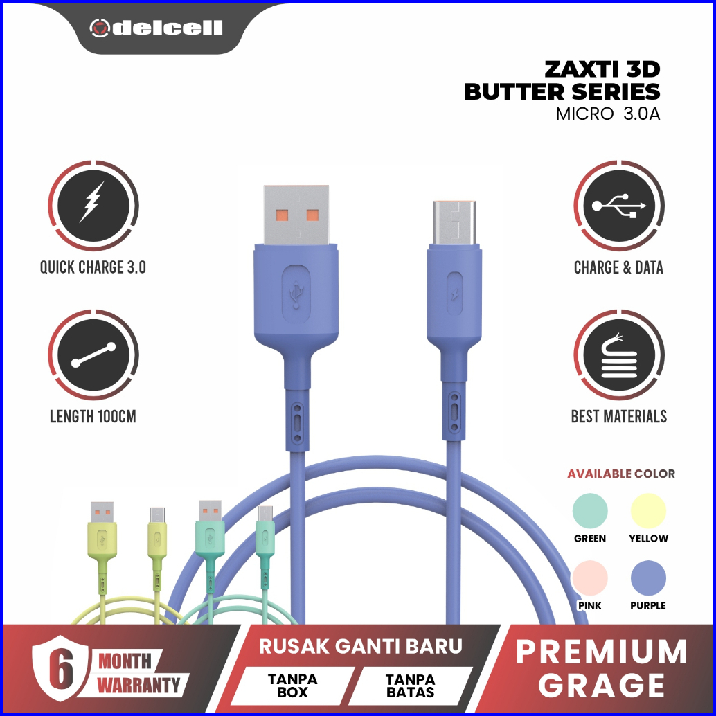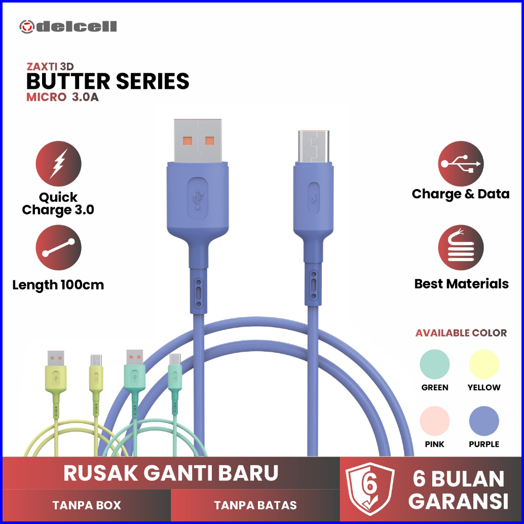 Delcell Kabel Zaxti 3rd Butter Series Micro Usb Fast Charging Cable Data