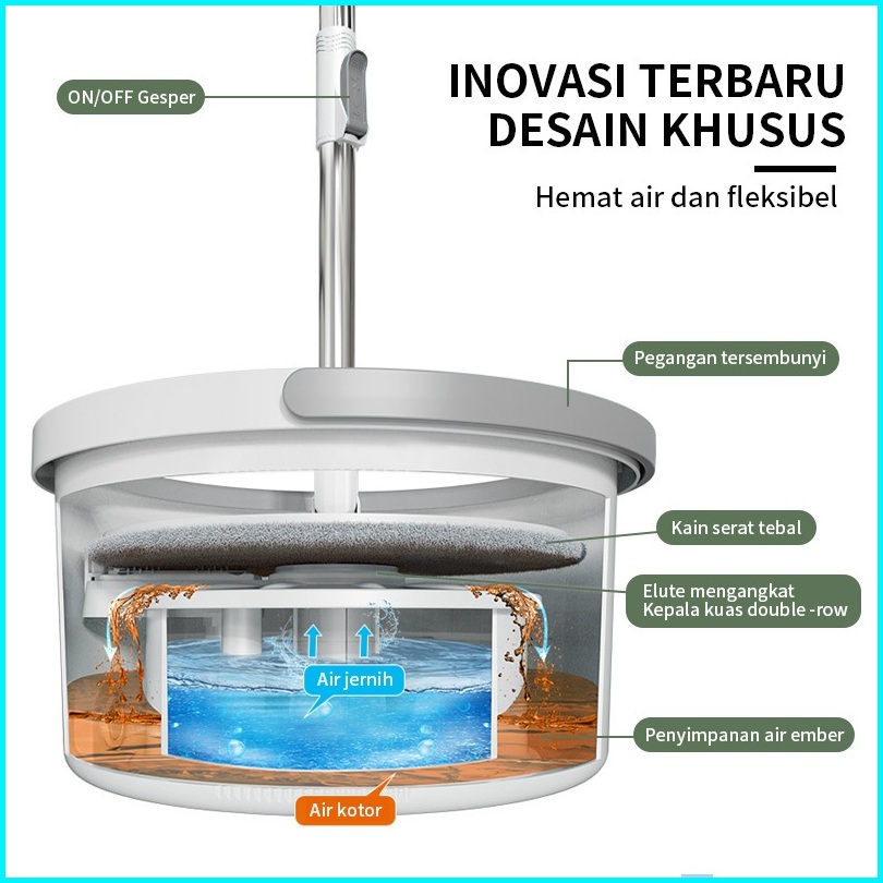 Gm Bear Alat Pel Lantai Putar Otomatis Tanpa Peras 1367 - Spin Mop Pel Pelan Lantai