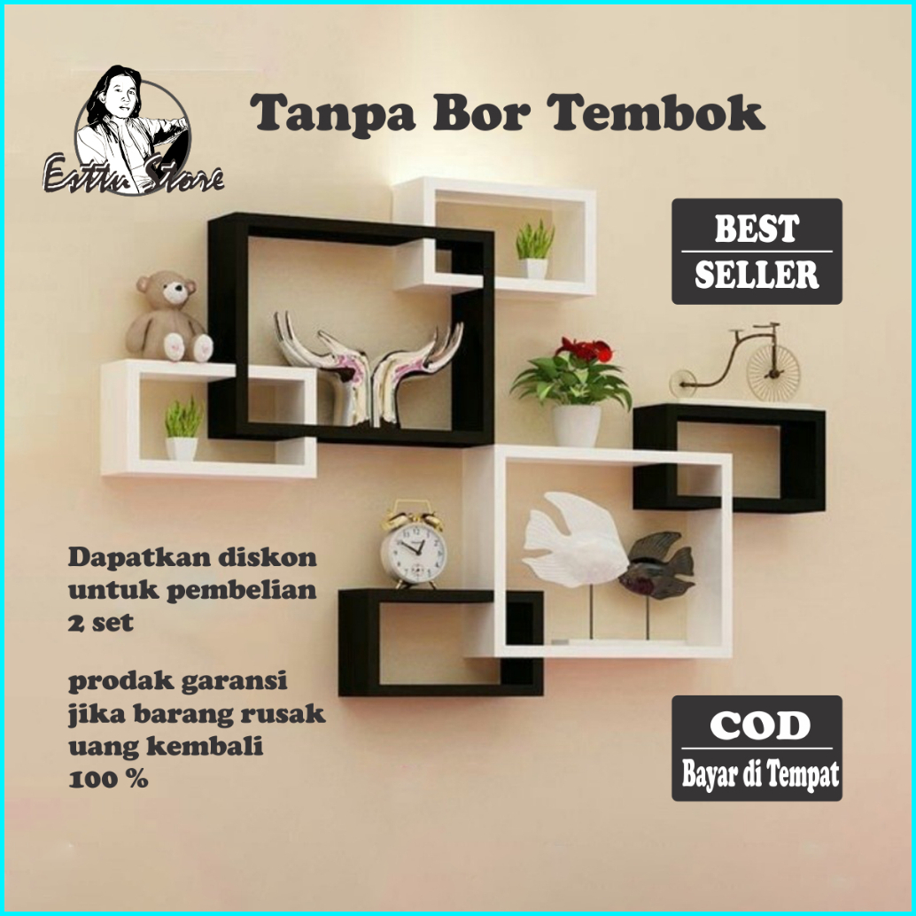 Rak Dinding Kotak Minimalis Hiasan Dinding Sudut Estetik Mudah Pasang Kokoh