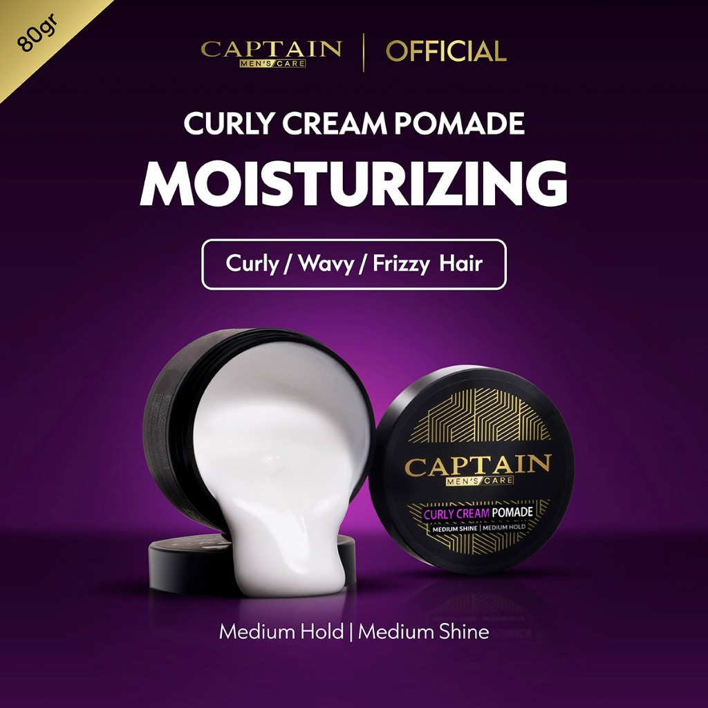 Captain Men's Care Curly Cream Pomade 80gr Dengan Argan Oil Dan Ginseng