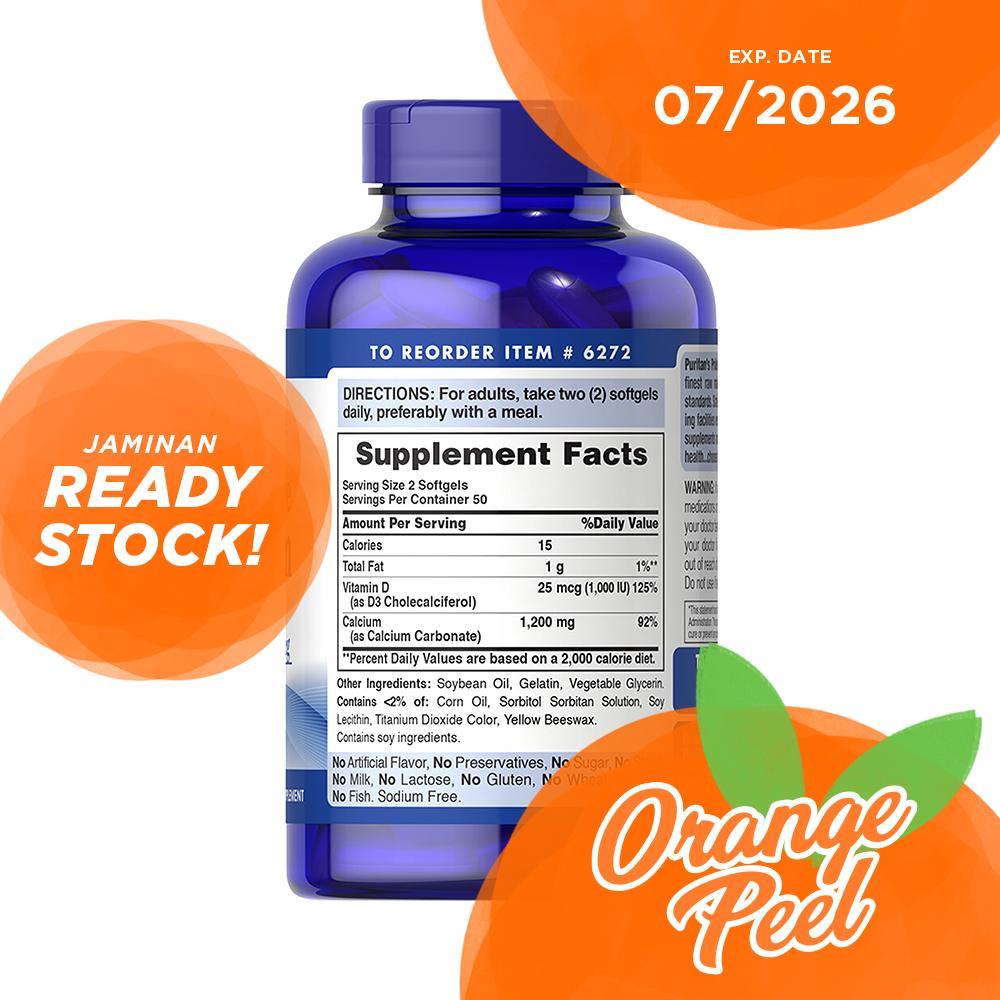 PURITAN ABSORBABLE CALCIUM 1200 MG WITH VITAMIN D3 1000 IU
