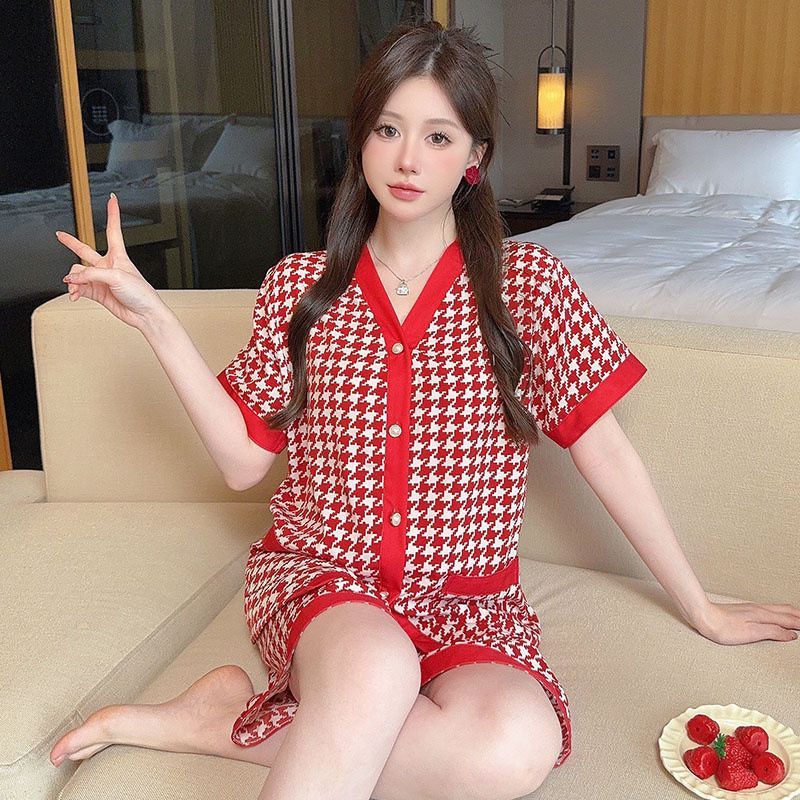 TERBARU Piyama Wanita Kancing Design Pearl Celana Pendek Lengan Pendek IMPORT Best Quality / Baju Tidur / Piyama