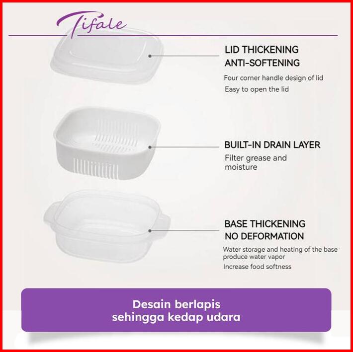 Tifale Food Kontainer Kotak Penyimpanan Makanan Buah Sayuran Saringan Serbaguna