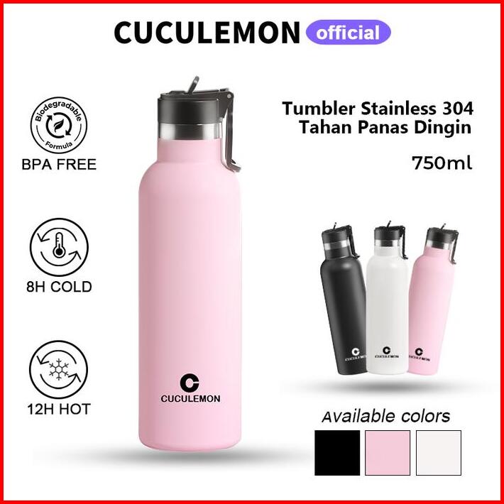 Cuculemon Tumbler Air Termos Tahan Panas Dingin Stainless Steel Botol Minum 1 Liter Sedotan Vacuum Thermos Olahraga Bott