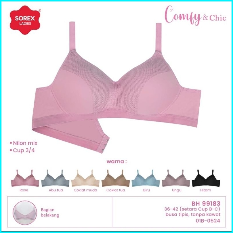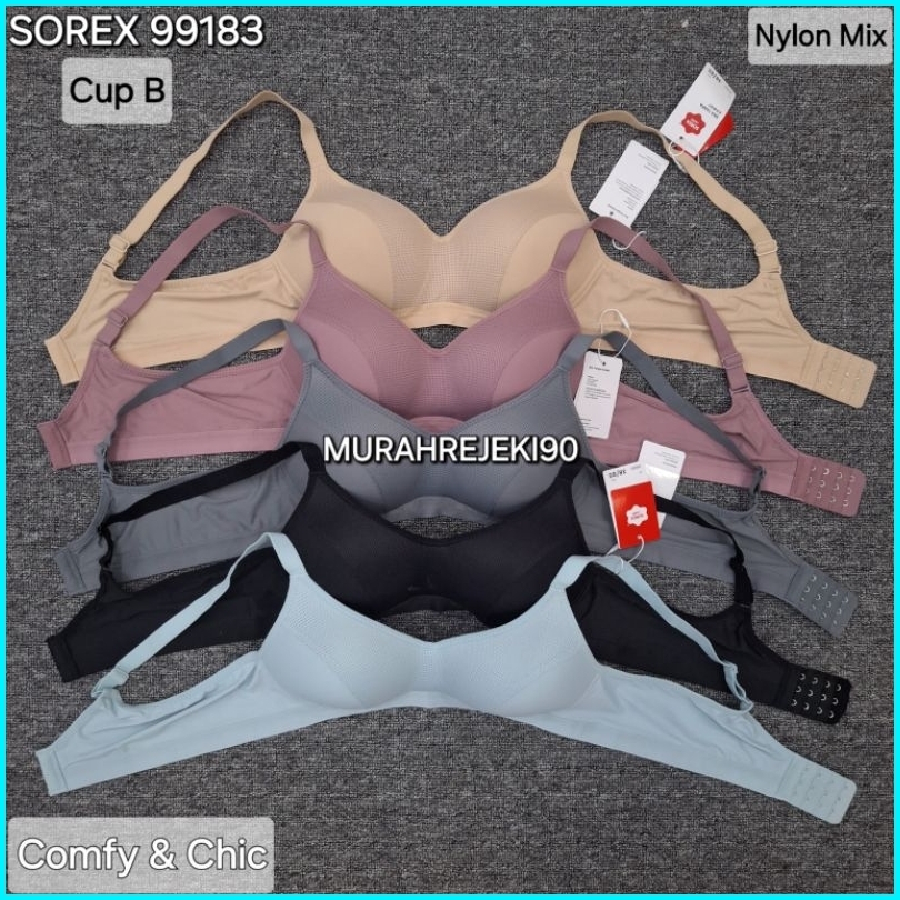 Sorex 99183 Bra Cup Sedang Busa Tipis Tanpa Kawat Kait 3 Step 4 Bahan Nylon Mix
