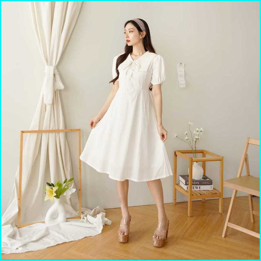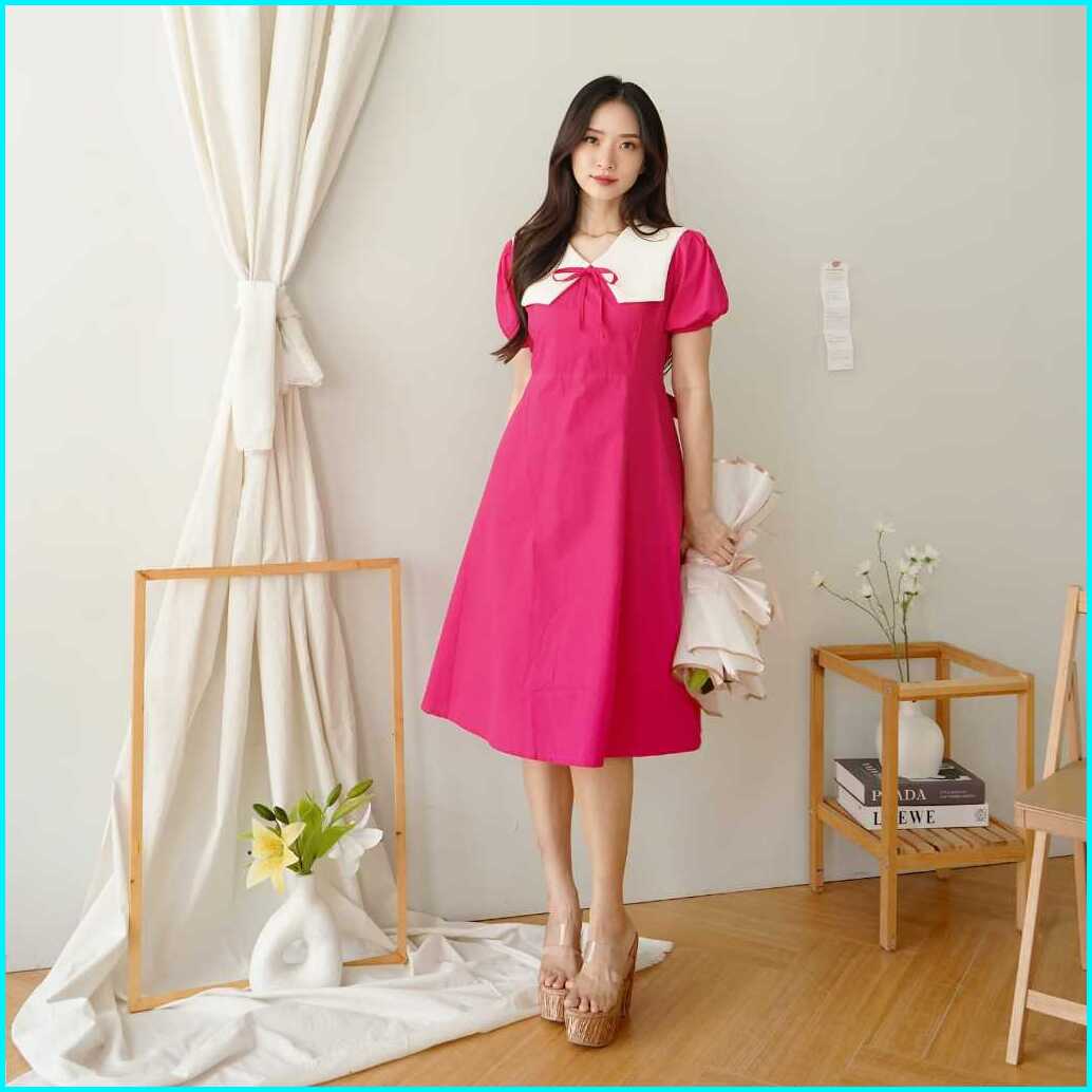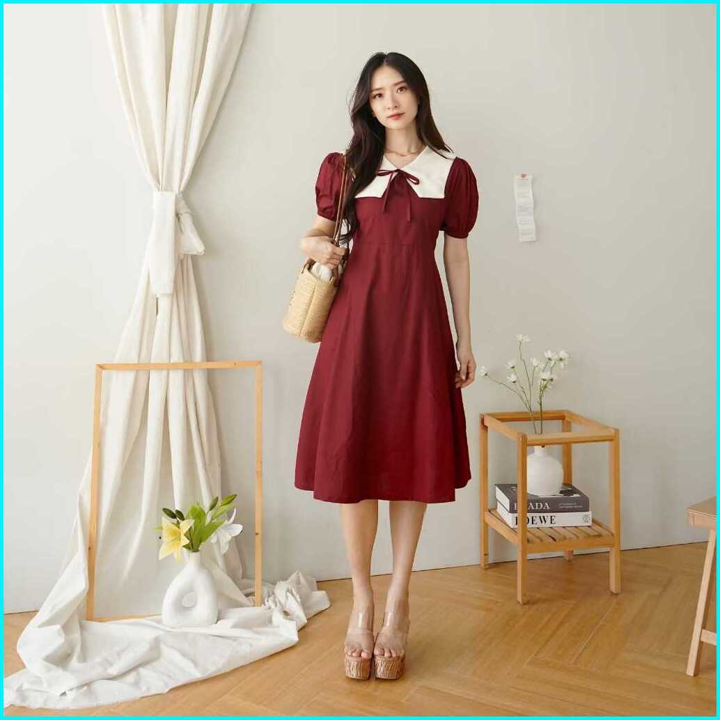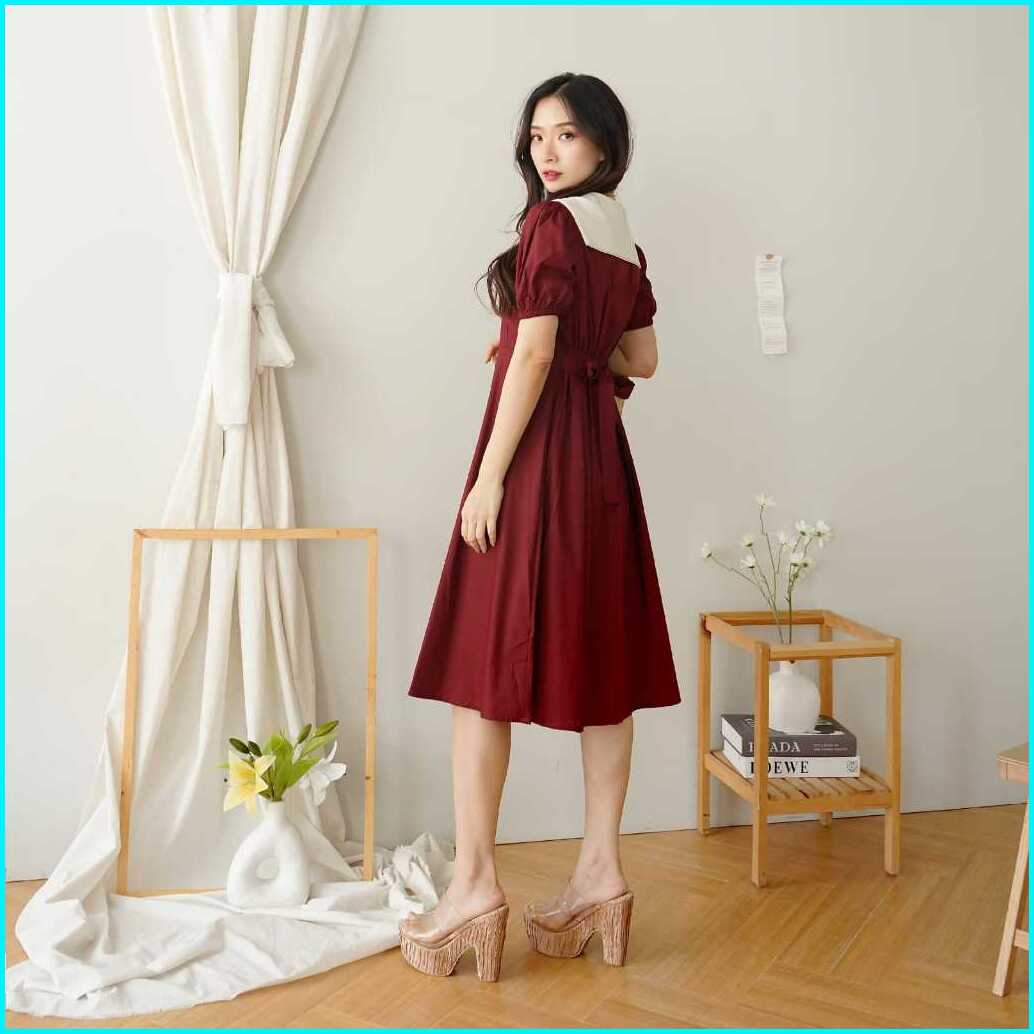 Aenor Cloth - Norine A Line Dress Midi Ada Big Size Premium Cotton Maroon Green White Black Dress Natal Basic Vintage Ko