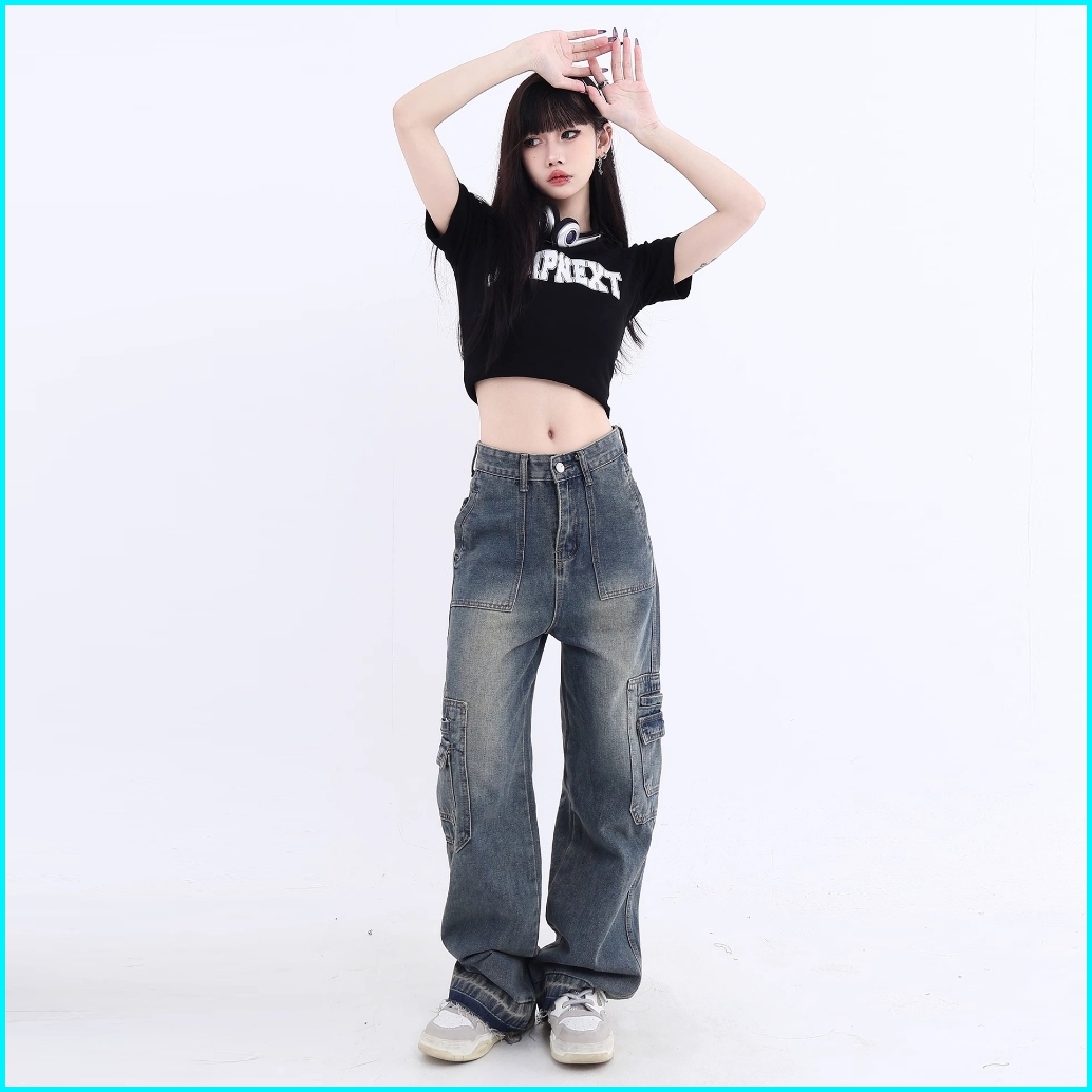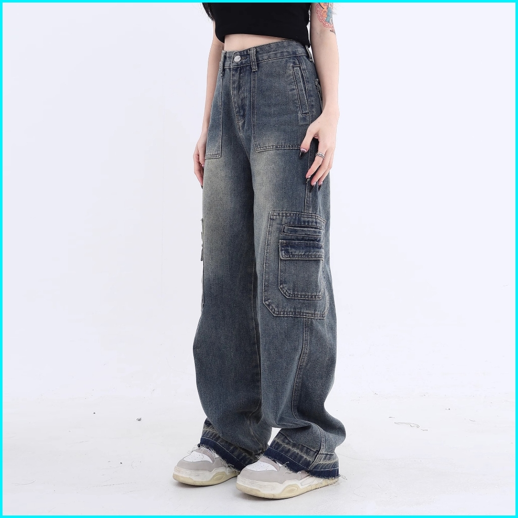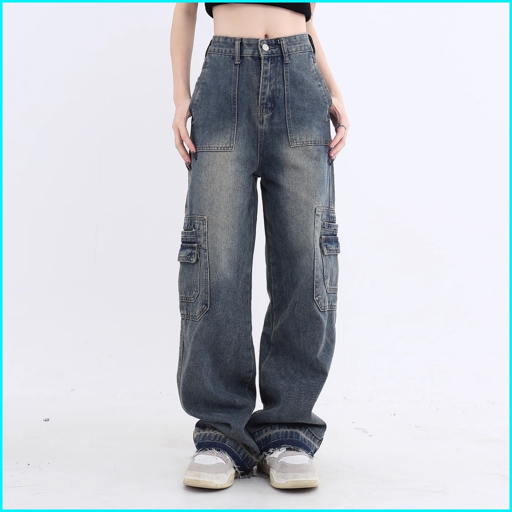 Alice Jeans-celana Jeans Wanita Highwaist Kulot Loose Biru Retro Korea Style