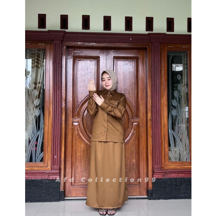 Seragam PNS setelan pemda khakki tua wanita model saku dada rok span rempel terbaru 2025