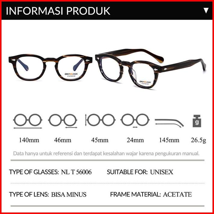 Grey Jack Frame Kacamata Frame Acetate Model Oval Fashion Pria Wanita Bisa Minus Antiradiasi Bluecromic 56006