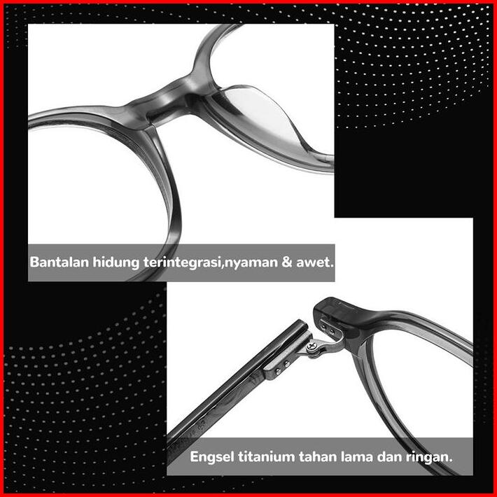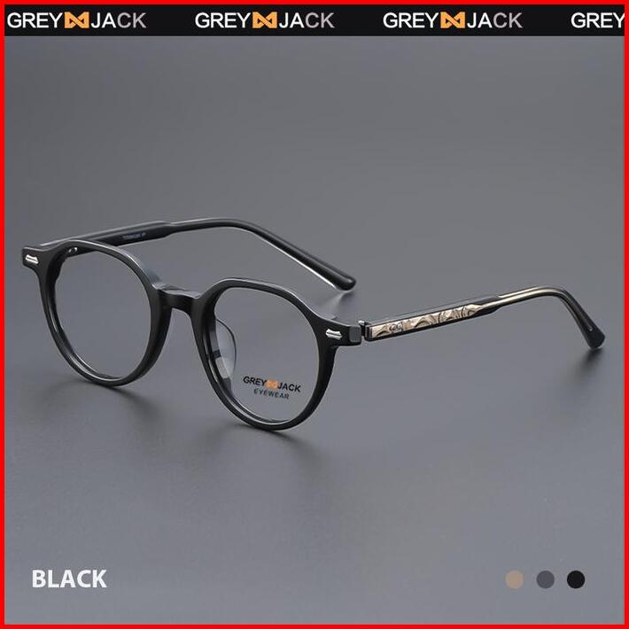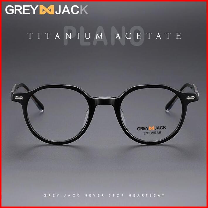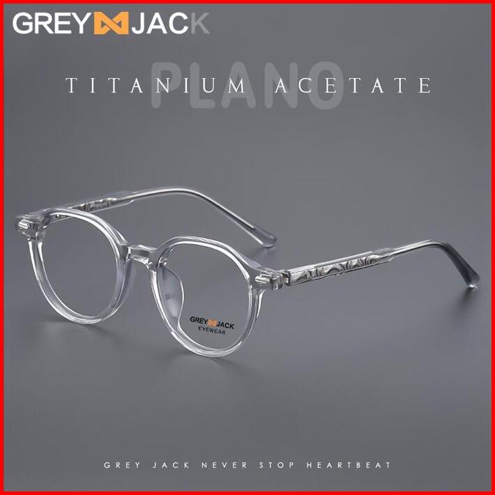 Grey Jack Frame Kacamata Model Oval Bulat Fashion Pria Wanita Bisa Minus Titanium Acetate Kokoh Ringan 65003x