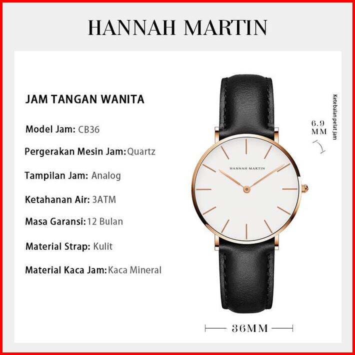 Hannah Martin Jam Tangan Wanita 100 Original Sangat Tipis Quartz Cewek Couple Kulit Anti Air Women Watch Laki Arloji Wom