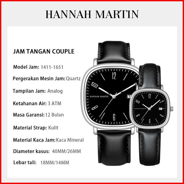 Hannah Martin Jam Tangan Pasangan Original Anti Air Analog Kulit Terbaru Watches Jam Tangan Wanita Jam Tangan Pria