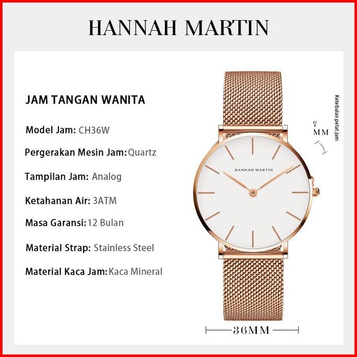 Hannah Martin Jam Tangan Wanita 100 Original Tahan Air Cewek Quartz Arloji Ch36w Watches