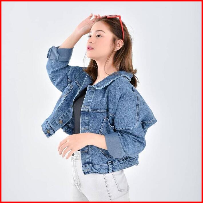 Pulbear Jacket Jeans Tebal Wanita Denim Santai Nyaman