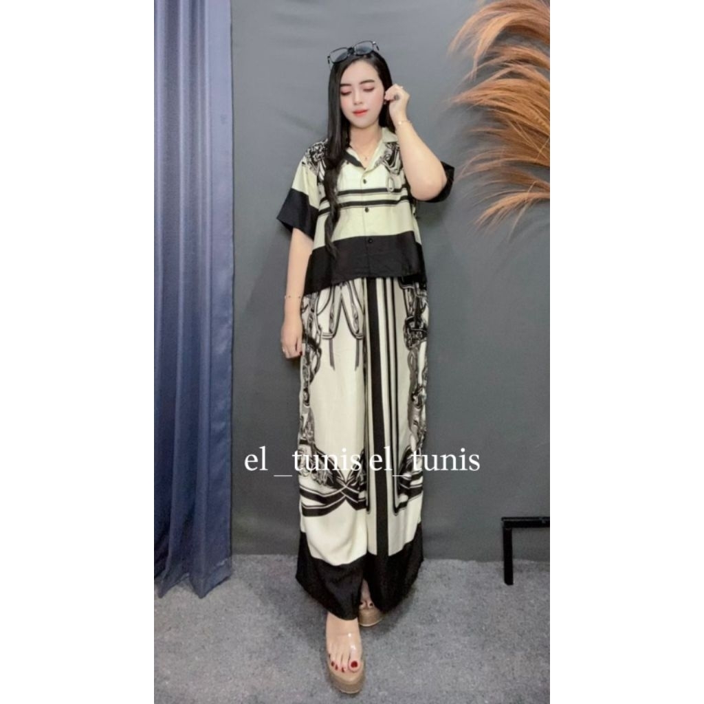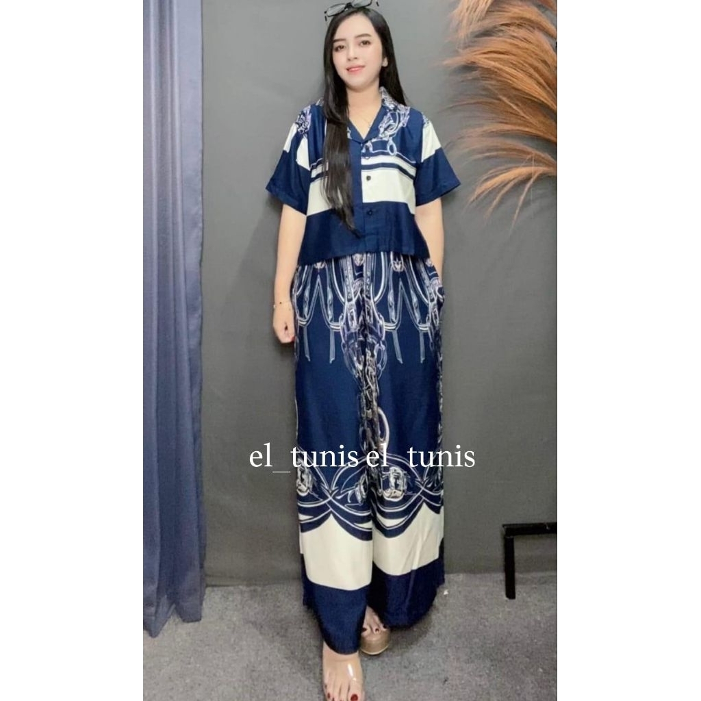 One set Crop Stelan Celana Kulot Highwaist/One set stelan rayon motif
